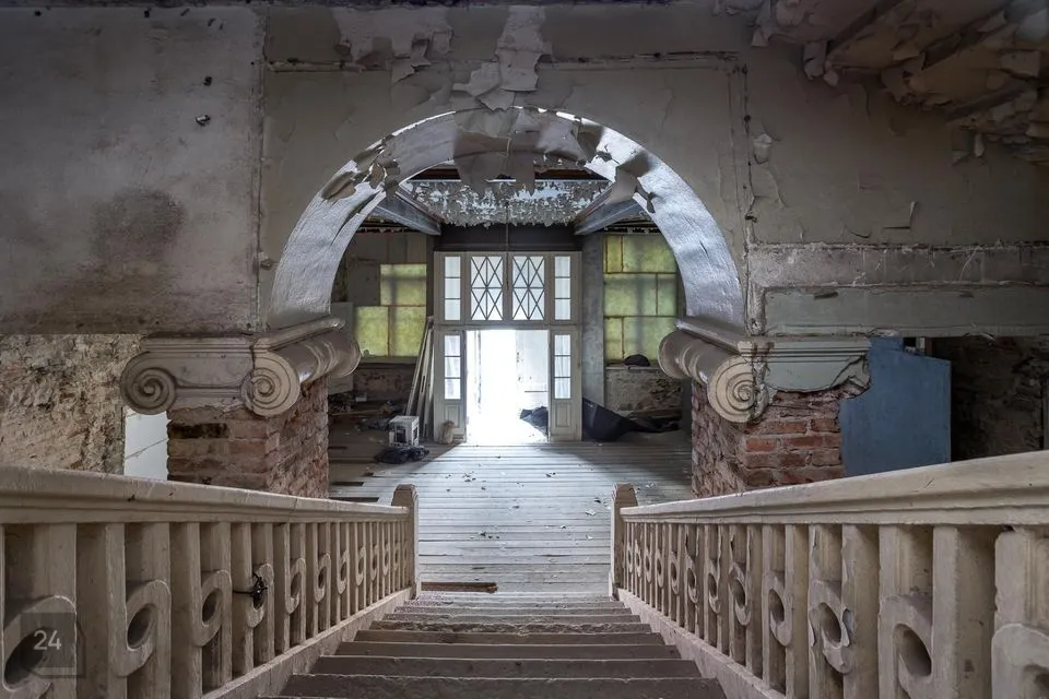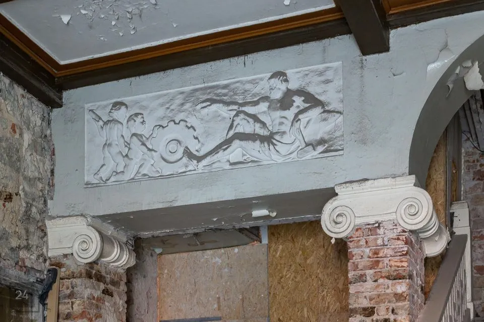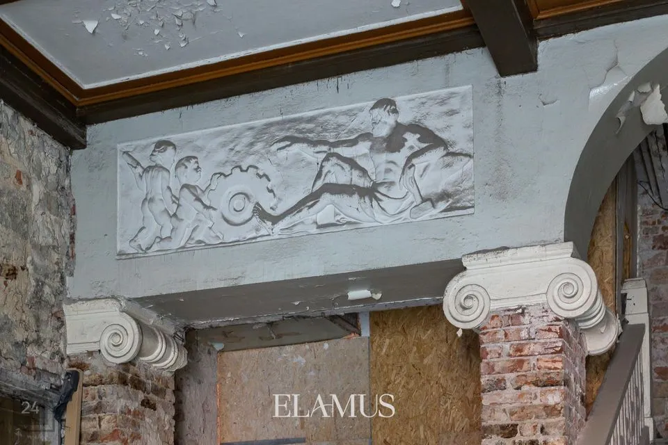 Arhitektuuriliselt on tegemist diele-dornse tüüpi elamuga, ehk ajaloolise äri- ja eluhoonega ühes. Vaatamata läbielamistele on hoone tänavaseinas tänaseni algsel kohal ja terviklikult säilinud esinduslik raidportaal ja põhjapoolne ristraidraamiga aknaava. Ka lõunapoolne aknaava on tõenäoliselt algsel kohal, kuid raidraamita. Keskaegset Diele ruumivormi muudab 20 saj. antud ruumikujundus. Praegu jälgitav lagi, peatrepp ja neoklassitsistlik, joonia sammaste ning allegooriliste bareljeefidega kaunistatud vahesein on dateeritud 1920ndatesse aastatesse. Trepist paremale jääb tõenäoliselt tööstust sümboliseeriv bareljeef (sepahaamriga Vulcanus koos kahe putoga), vasakule kaubanduse allegooriline võrdkuju (Mercurius, käes kepp, millel põimuvad kaks madu). Esialgse asukohale püsima jäänud elementide hulka võib arvata ka 17. saj. dateeritava, põhjaseina unikaalse barokkukse. Lõunaseinal eksponeeritud raidkivi fragment madalreljeefse gooti vaikimisroosiga (15. saj. I pool ) on oma praeguse paiga saanud 20. sajandil. Dornses säilinud kaks aknapiita esindavad 18. saj. barokki. Pööningul, õue- ja tänavapoolset osa eraldavas vaheseinas on raidportaal (15.-17. saj.). Katusekonstruktsioon pööningul on tugevatest, kirvega tahutud palkidest, eeldatavasti 18. saj. II poolest.
