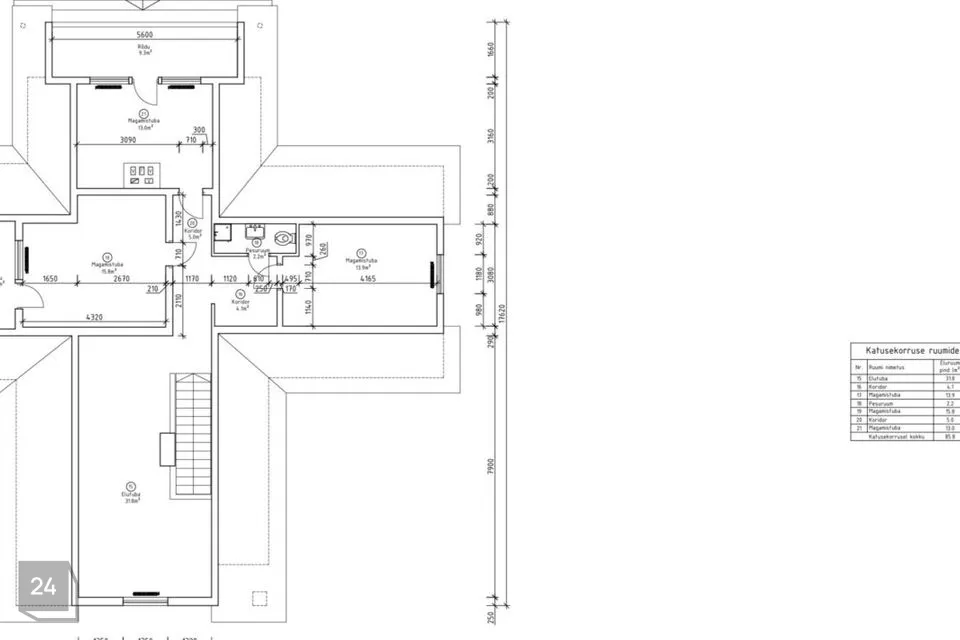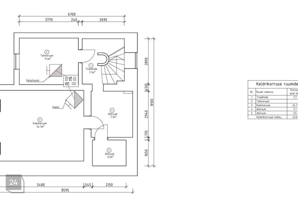 Kaminaruum 24,7 m², kaks abiruumi ning tehnoruum.