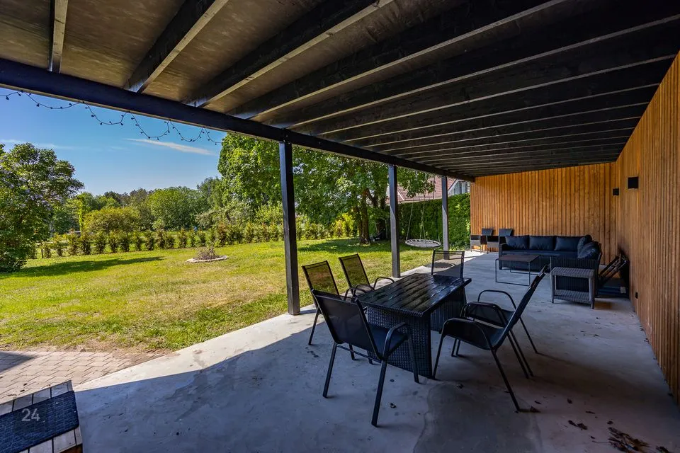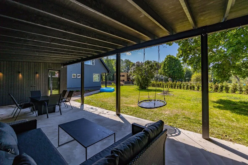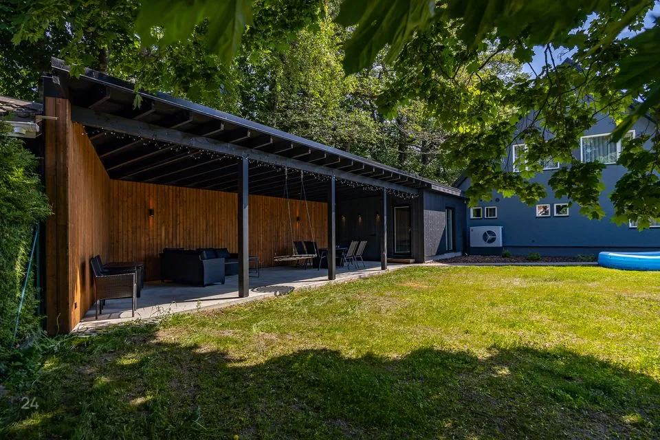 • Saunast pääseb otse suurele (47m2) terrassile/välikööki – ideaalne kombinatsioon!. Võimalik kasutada talv läbi, kui paigaldada klaasid.