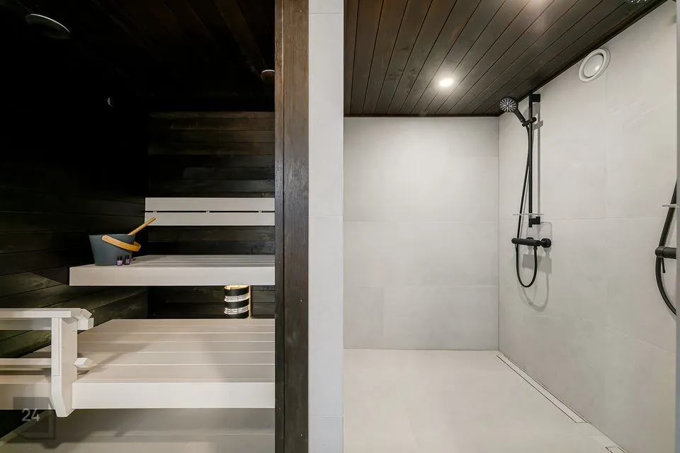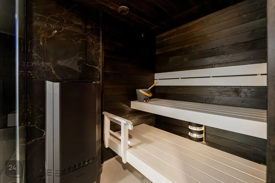 • Eraldiseisev 20 m² suurune saunatsoon: istumisala, klaasseintega leiliruum vaatega hoovi rohelusse. Saunum SPA Session keris – leili ja aurusauna kogemus on tänu Saunumi tehnoloogiale ühtlaselt pehme ja tervislik – ideaalne ka lastele ja tundlikule nahale