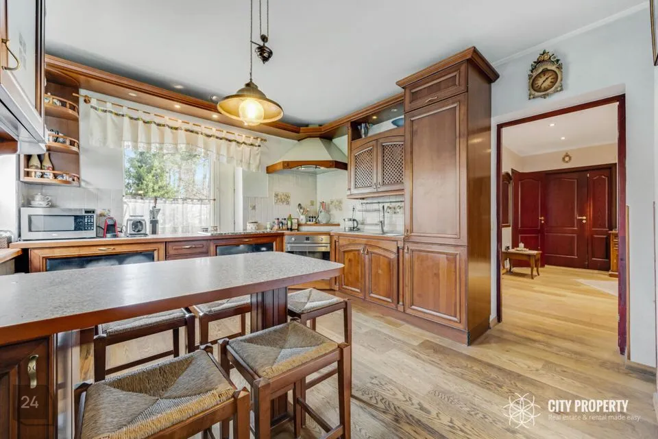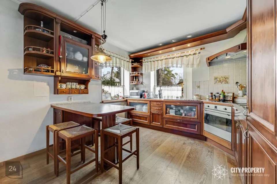 Köök on sisustatud eritellimusel valmistatud köögimööbli ja tehnikaga (elektripliit, elektriahi, õhupuhasti). Hetkel on tehnika töökorras. Ruumikas köök on eraldi asetsev ja kahelt poolt ligipääsetav. Köögis on olemas söögilaud/lett koos 4 tooliga.