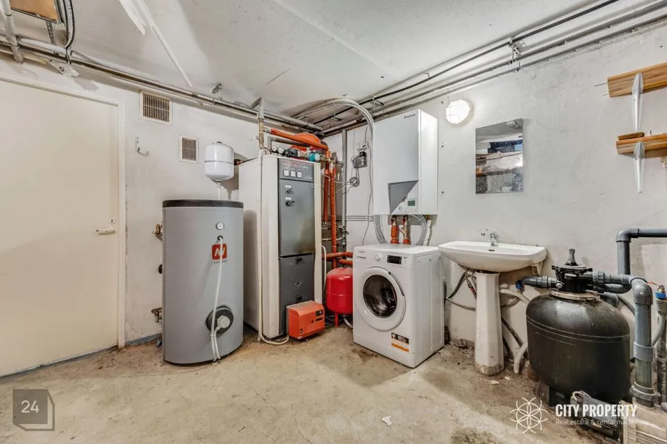 Maja keldrikorrusel asuvad ka tehnoruumid ja garaaž/hoiuruum. Olemas on ka töötuba/panipaik, mida saad kasutada vastavalt oma soovidele või vajadusele. Garaaž on kasutusel hetkel hoiuruumina, autoga garaaži ei pääse. Samas on seda hea kasutada ruumina kuhu mahutada jalgrattad, mootorrattas ja aiatehnika.