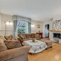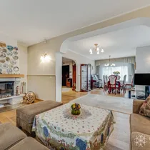 Avar elutuba on läbi maja planeeringuga ja on jaotatud osadeks. Ühel pool asub söögituba ning teises osas on puhkenurk, kus on suur diivan, kamin ning siit pääseb ka terrassile. Tuba on väga valgusküllane ning avar ja mahutab ka suurema pere koos vaba aega nautima.