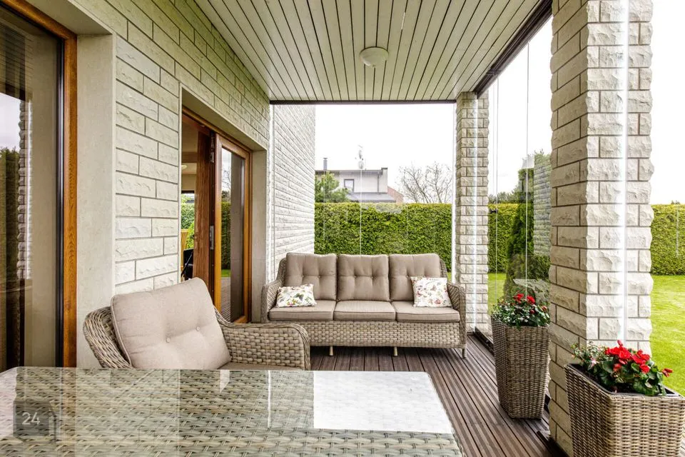 Kvaliteetselt ehitatud kivimaja: konstruktsioon on FIBO-blokkidest, kaetud naturaalsete dolomiidist välisplaatidega ning kaetud vastupidava kivikatusega. Hoone arhitektuur ja materjalid loovad esindusliku ja kauakestva mulje.