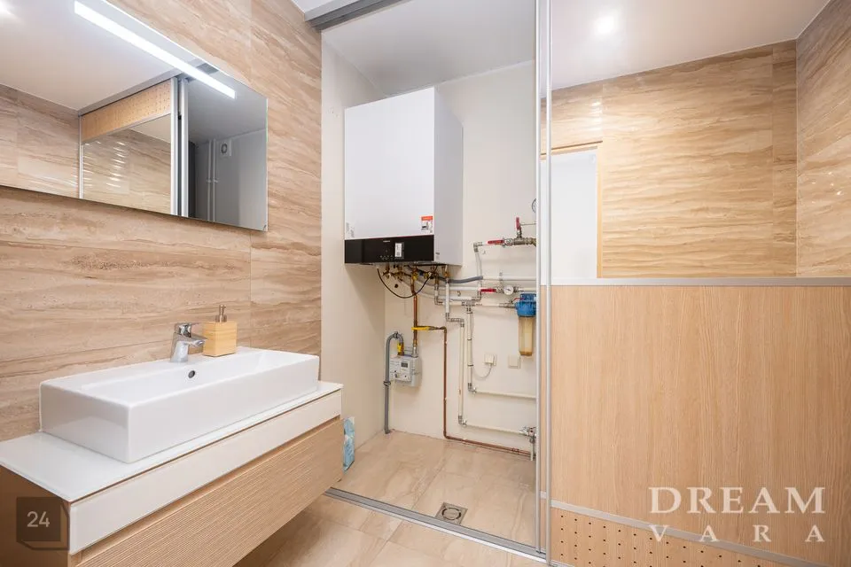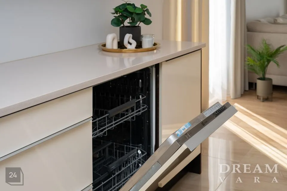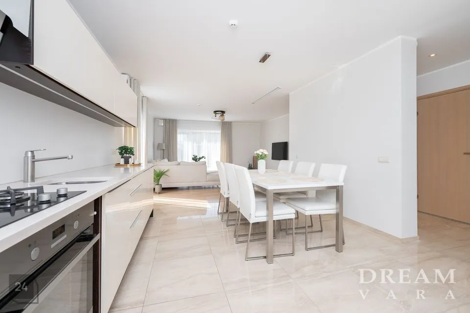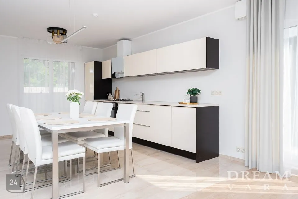 Müügihinna sisse kuulub kogu piltidel nähtav heas korras sisustus. Olemas on sisseehitatud garderoobid, valgustid, kardinad ning kõik muu eluks vajalik. Köögis on paigaldatud köögimööbel kivist töötasapinnaga, integreeritud tehnikaga, sealhulgas nõudepesumasin, praeahi, keraamiline ja gaasipliit, kubu ning külmik.