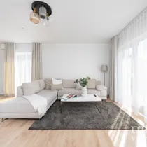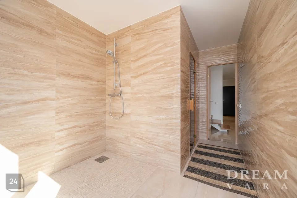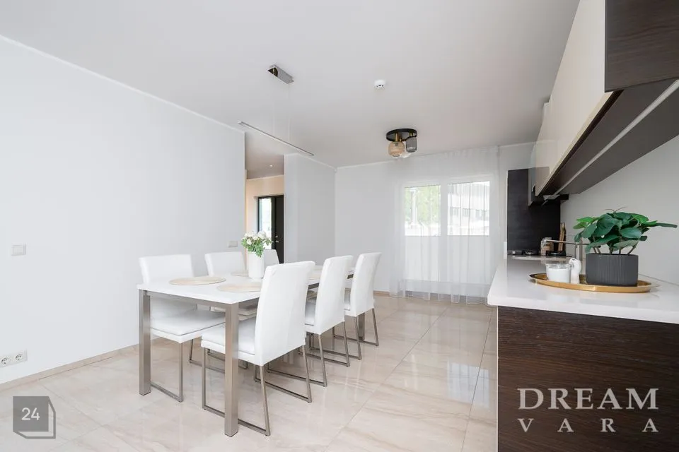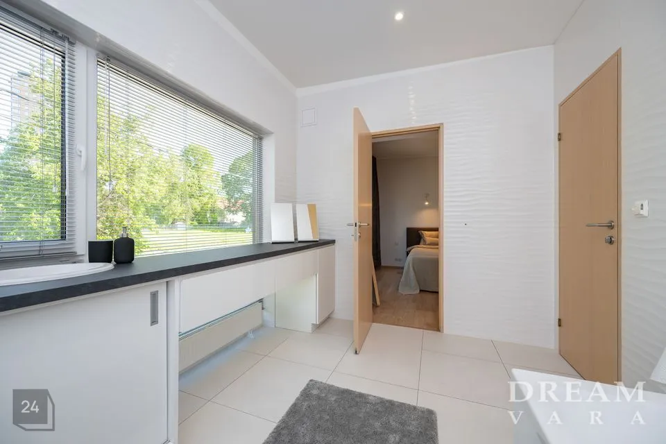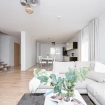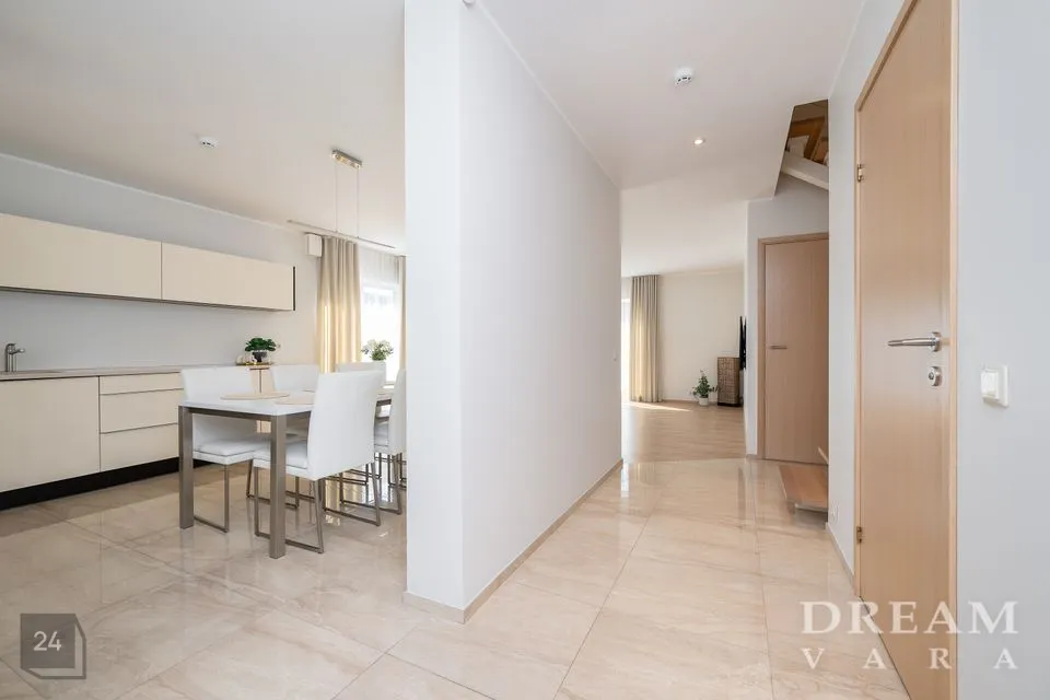 Interjööris domineerivad heledad ja neutraalsed toonid, mis loovad avara ja valgusküllase atmosfääri. Põrandatel on kasutatud kvaliteetset kulumiskindlat laminaatparketti ja põrandaplaate. Heledates toonides värvitud seinad ja valged laed rõhutavad ruumide modernset ilmet.