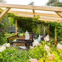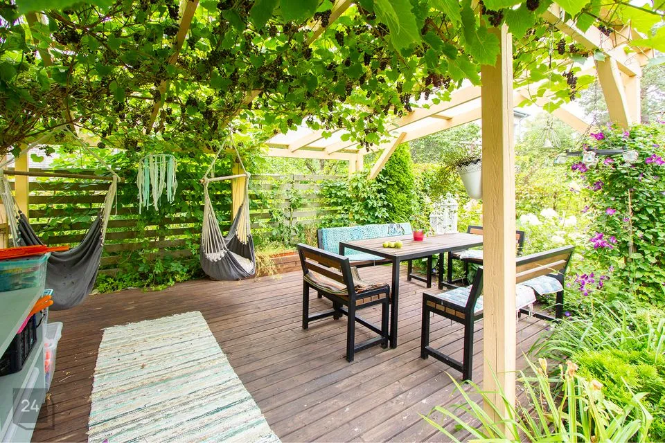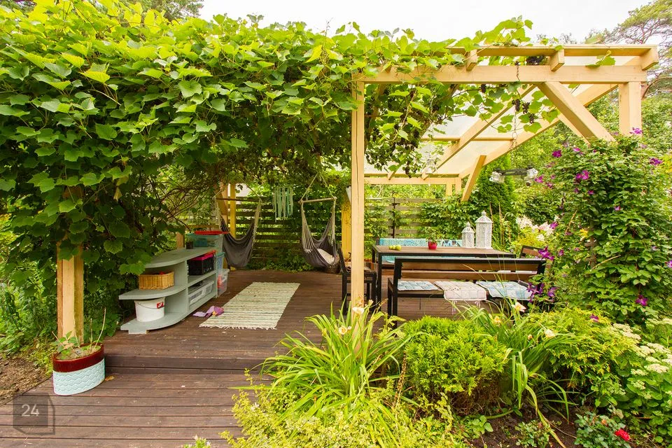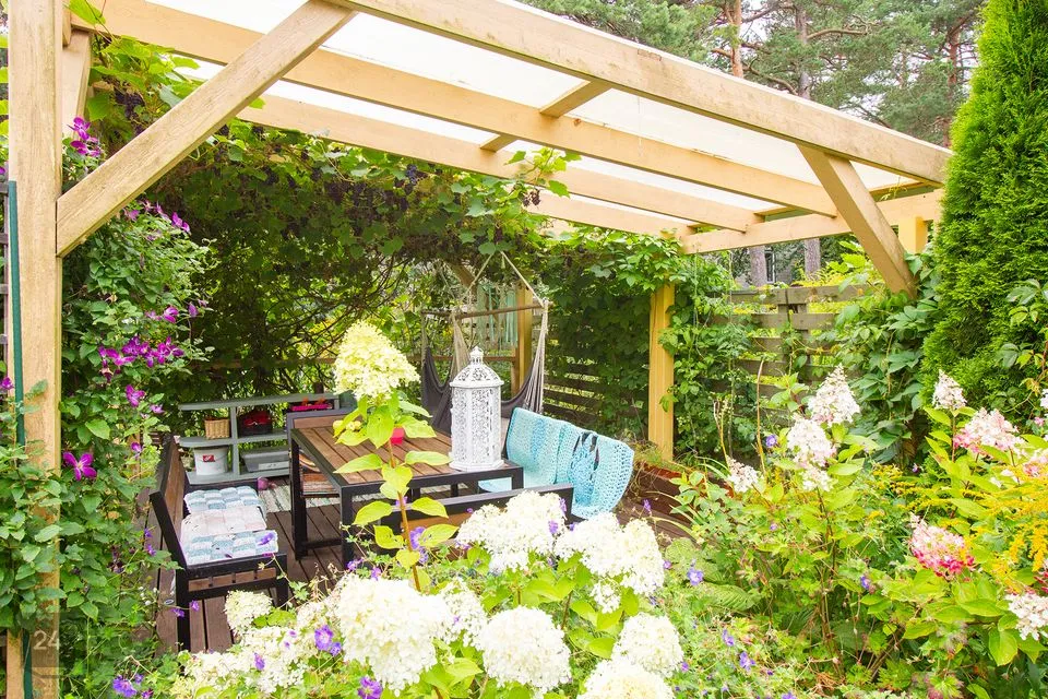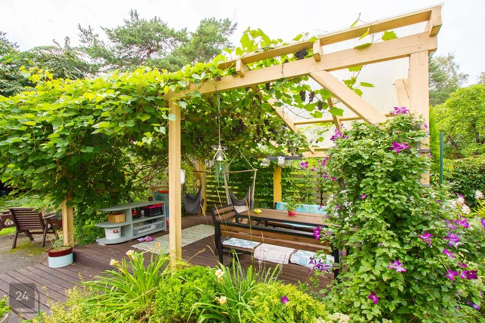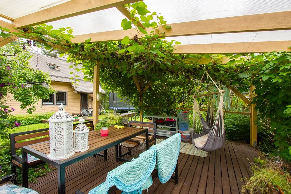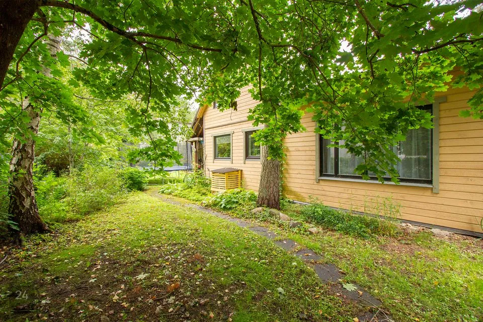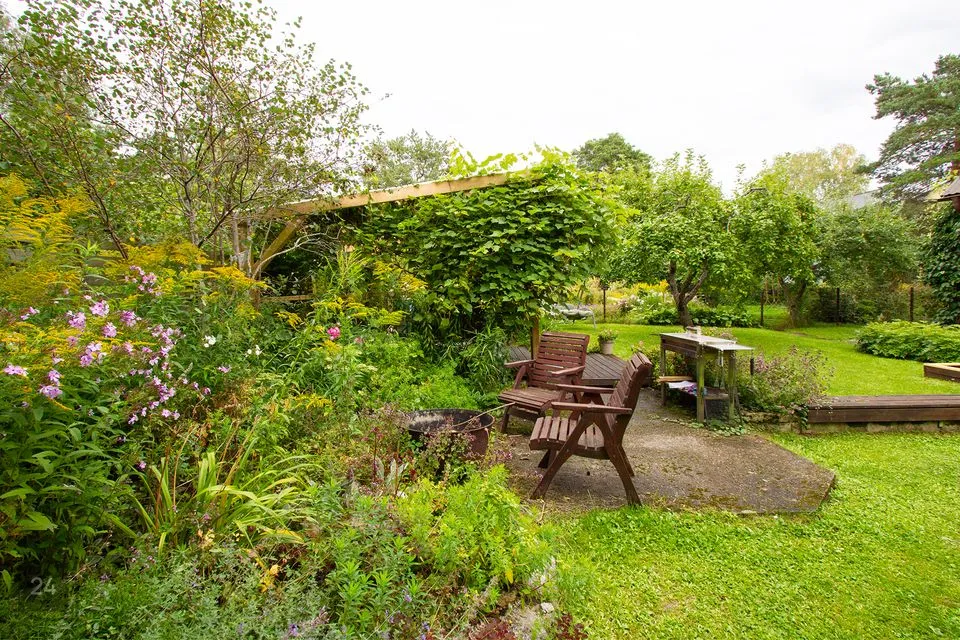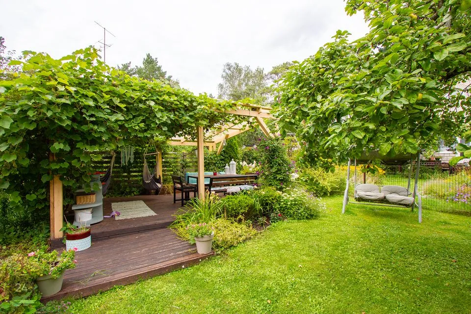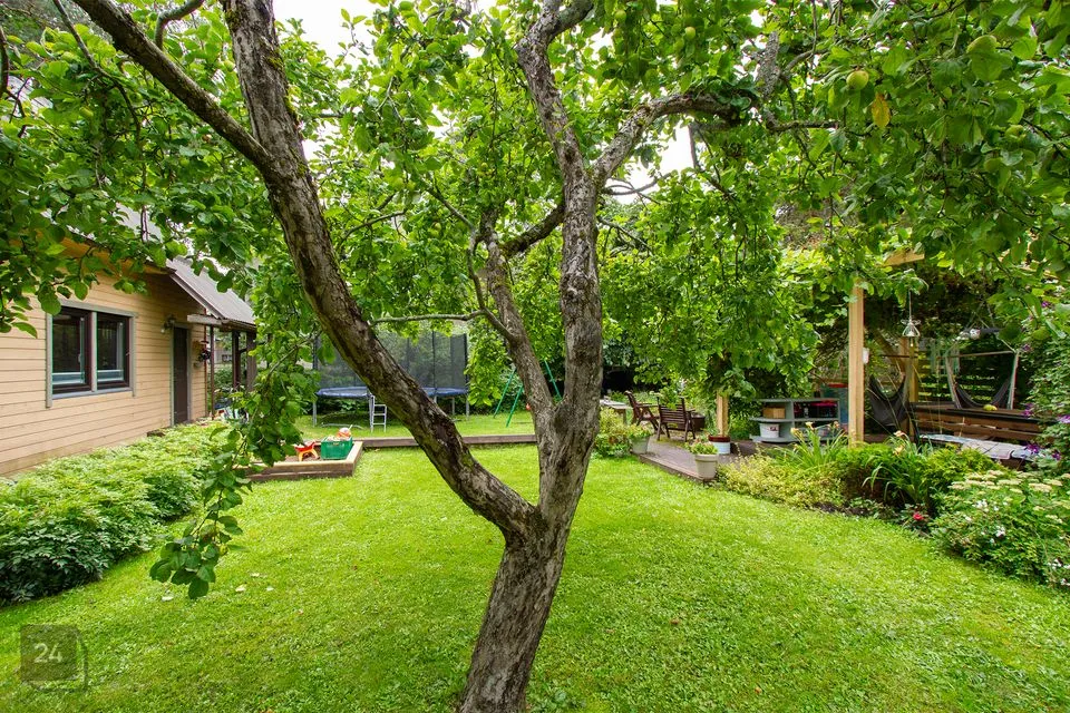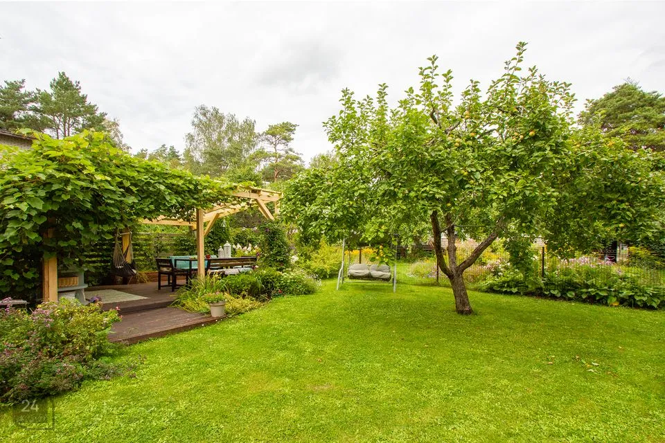 Maja ümbritseb 600 m² suurune aiaga piiritletud hooviala. Majani viib eraldi privaatne sissepääs koos värava ja parkimiskohaga. Hoovis on kaunis ja hooldatud kõrghaljastus, kus on nii viljapuud, põõsad kui ka erinevad lillesordid. Puhkehetkedeks on aias hubane katusealune koos grillinurga ja lõkkekohaga. Lapsi ootab liivakast, kiik ja batuut.