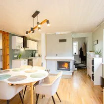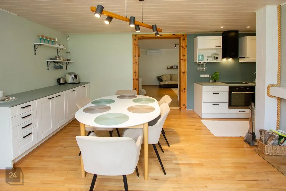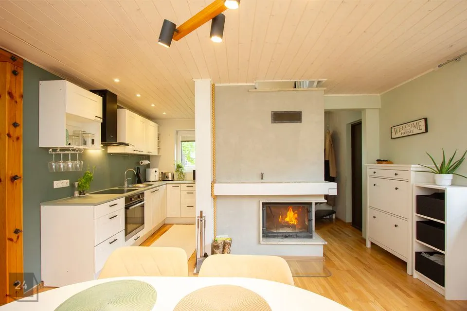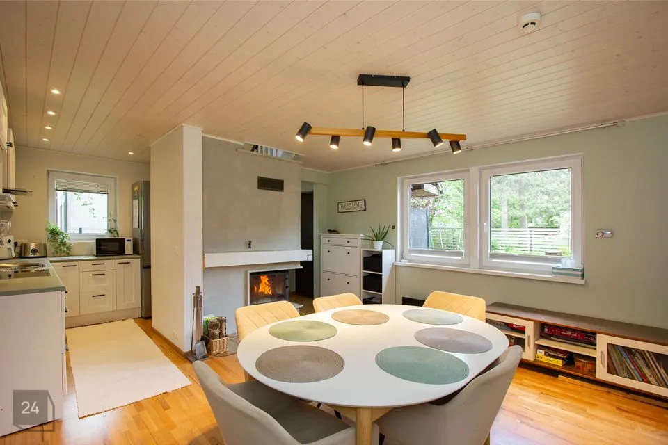 Maja südameks on suur söögituba, kus kaminahju kõrval koos pere ja sõpradega mõnusaid õhtuid veeta. Majja on äsja paigalatud uus Ahja soojustsalvestav moodulahi. Fotodel on vana kamin.