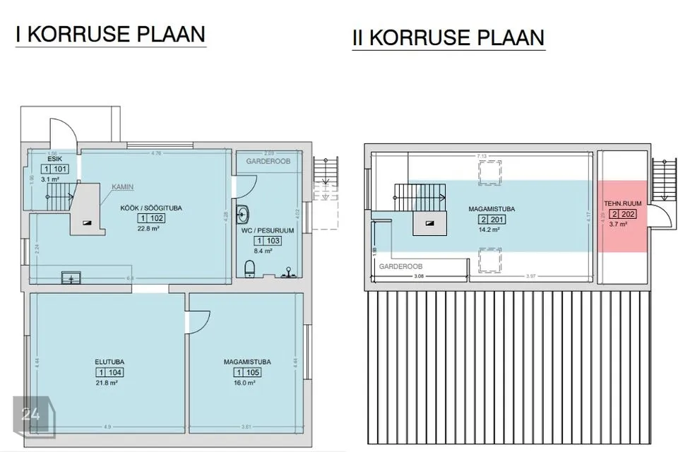 Elamispind on 86.3 m², kus I-korrusel asuvad esik, valgusküllane söögituba koos avatud köögiga, avar elutuba, magamistuba ja duširuum koos WC-ga. II-korrusel, kuhu viib puidust trepp, asub veel üks magamistuba koos garderoobinurgaga. Lisaks on II korrusel õuest eraldi sissepääsuga ka tehnoruum/panipaik.