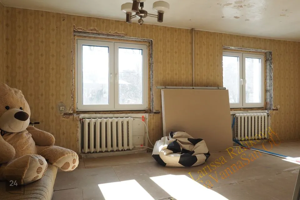 Majal on üks korrus täielikult elamiseks valmis: kaks magamistuba, elutuba kaminaga, köök ja dušš, koridor ja majapidamisruum.