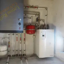 В подвале котельная, котел на базе воздух/вода, подогревает весь дом