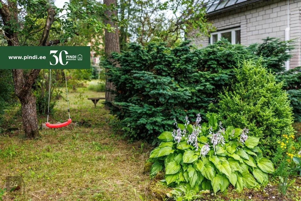 Hooldatud krunt on piiratud aiaga. Kinnistul kasvavad õunapuud, marja-, ilupõõsad ja kõrged männid. Paigaldatud on uus jalg- ja autovärav. Krundil lisaks kuur ja kasvuhoone.