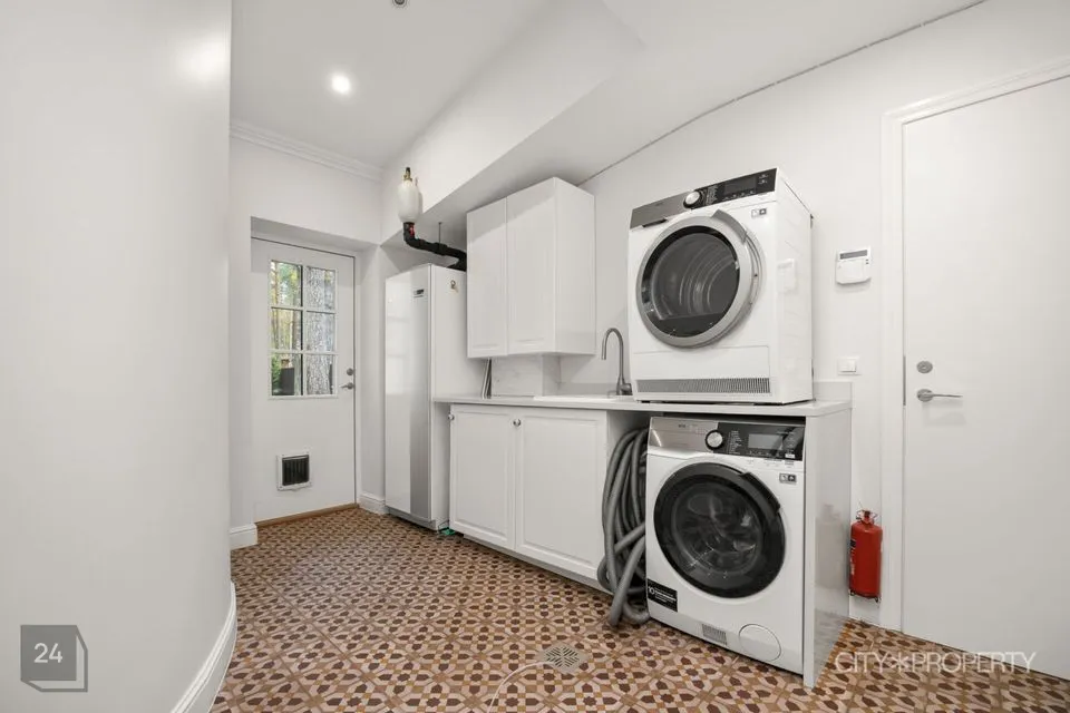 Kodu tehnosüsteemid on loodud mugavust ja ökonoomsust silmas pidades: tõhusat soojuse tootmist tagab NIBE maasoojuspump koos Uponori kütteautomaatikaga, mis juhib kogu maja katvat vesipõrandakütet ühtlase sooja ja madalate ülalpidamiskulude nimel. Siseõhu kvaliteedi hoiab stabiilsena ruumipõhine soojustagastusega ventilatsioon, mis mõõdab õhukvaliteeti ja tagab värske, tasakaalus sisekliima. Elutoas lisab hubasust ning akumuleerib soojust soojasalvestava korpusega kamin, mille looduskivist dekoor toob interjööri väärikat karakterit. Igapäevast mugavust täiendab kogu maja hõlmav kesktolmuimeja.