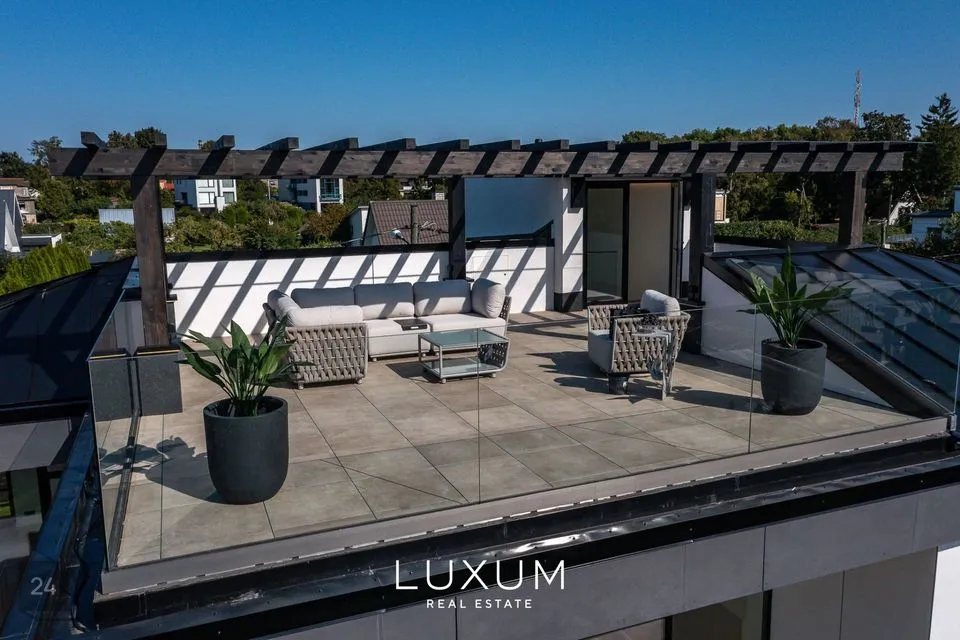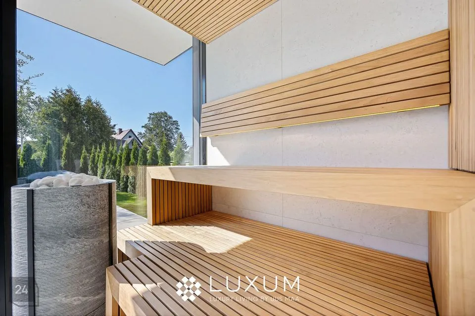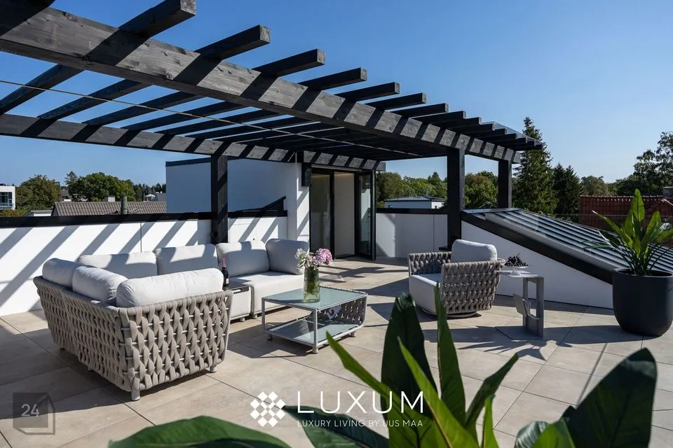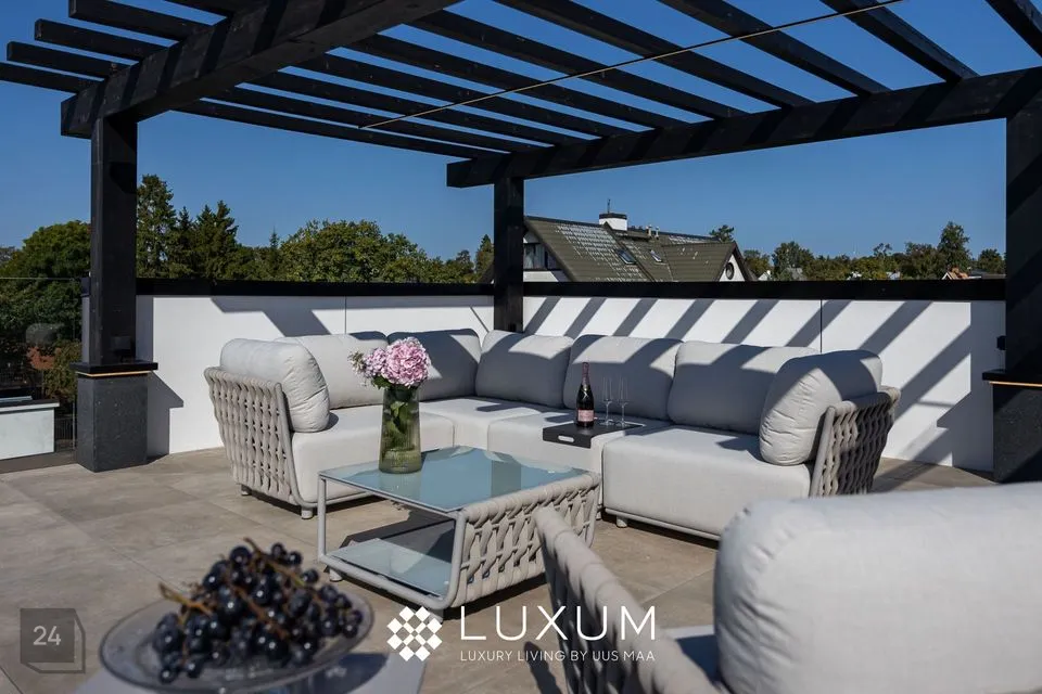 Eraldi väärib märkimist villa ca 50 m2 suurune katuseterrass, mis on osaliselt katusega kaetud ning kuhu võib end unustada päikeseloojanguid ja kordumatuid merevaateid nautima või hoopis mõnuleda talvises lumesajus soojas jacuzzis.
