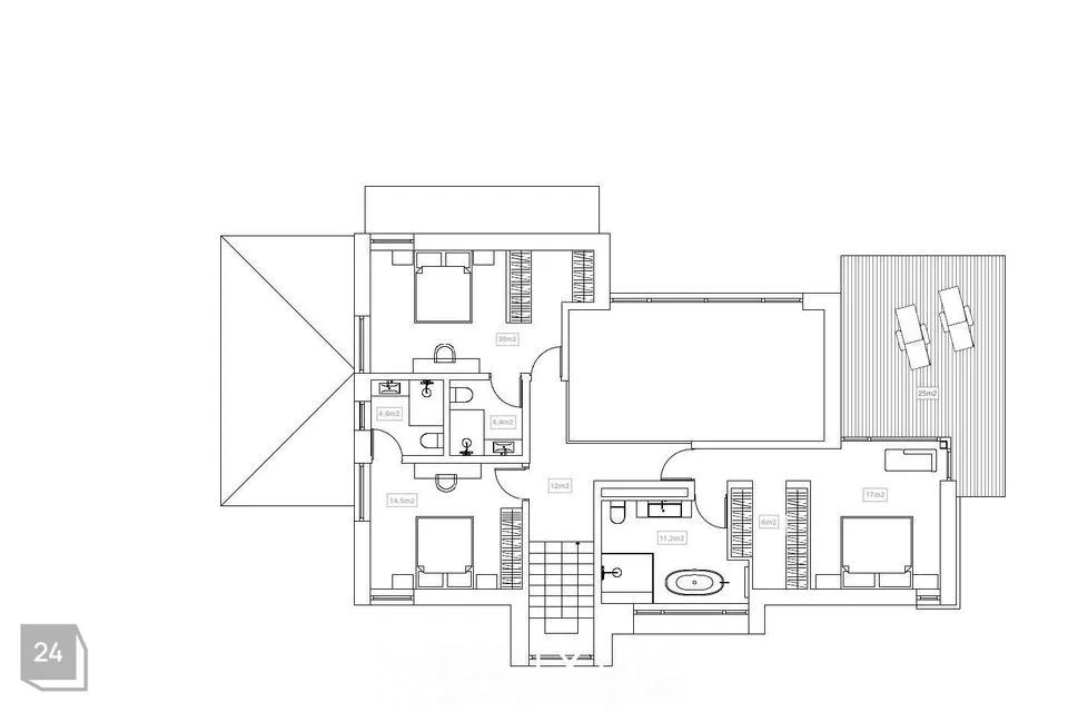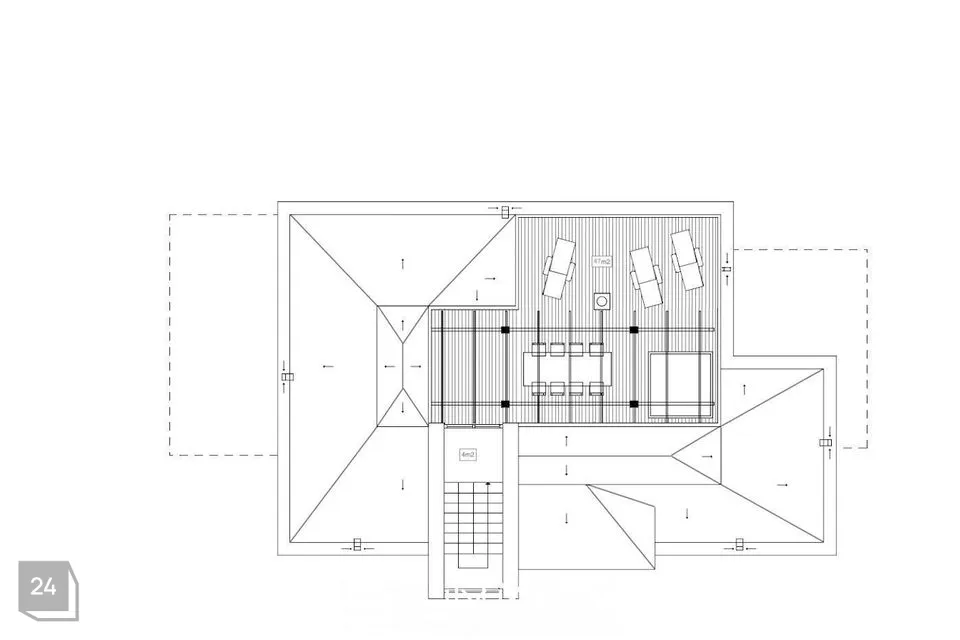 Villa üldpind on 244 m2, millele lisandub 1.korruse terrass 110 m2, 2.korruse terrass 25 m2 ning merevaatega katuseterrass suurusega 47 m2.