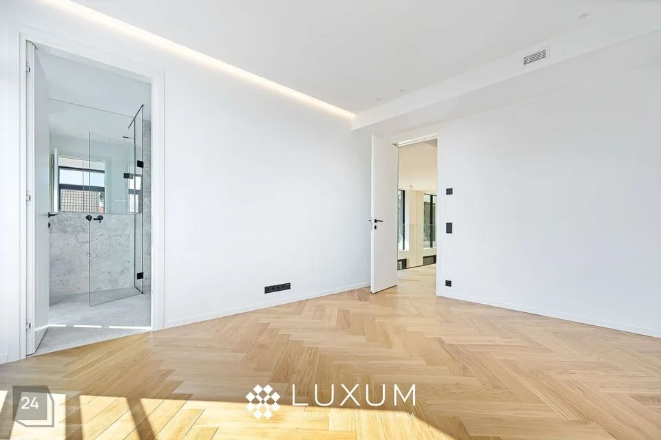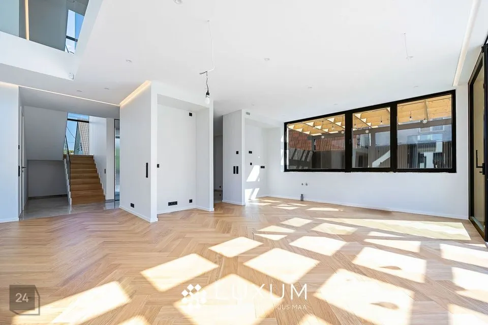 Villa siseviimistluses on kasutatud läbimõeldud ja väga kvaliteetseid materjale. Põrandaid katab õlitatud täispuidust liimitud kalasabaparkett, seinad on värvitud heledates toonides. Kõikidesse tubadesse on sisseehitatud karniisitagune valgustus, mis loob koju hubasust.