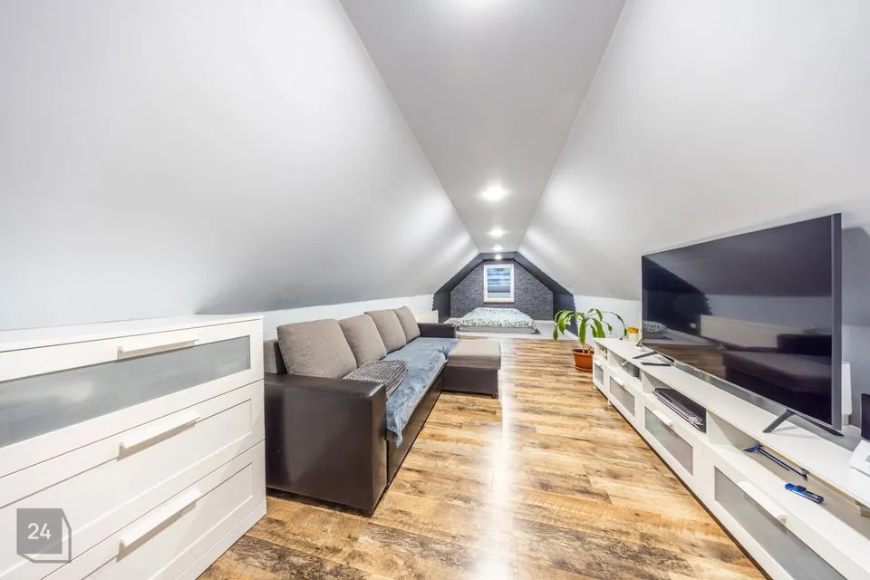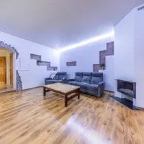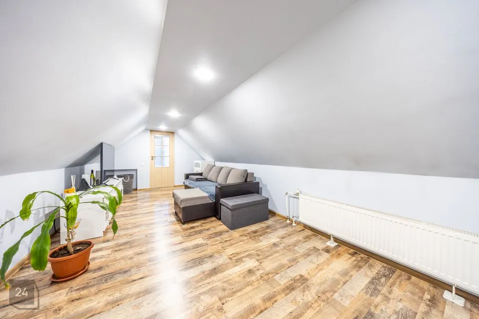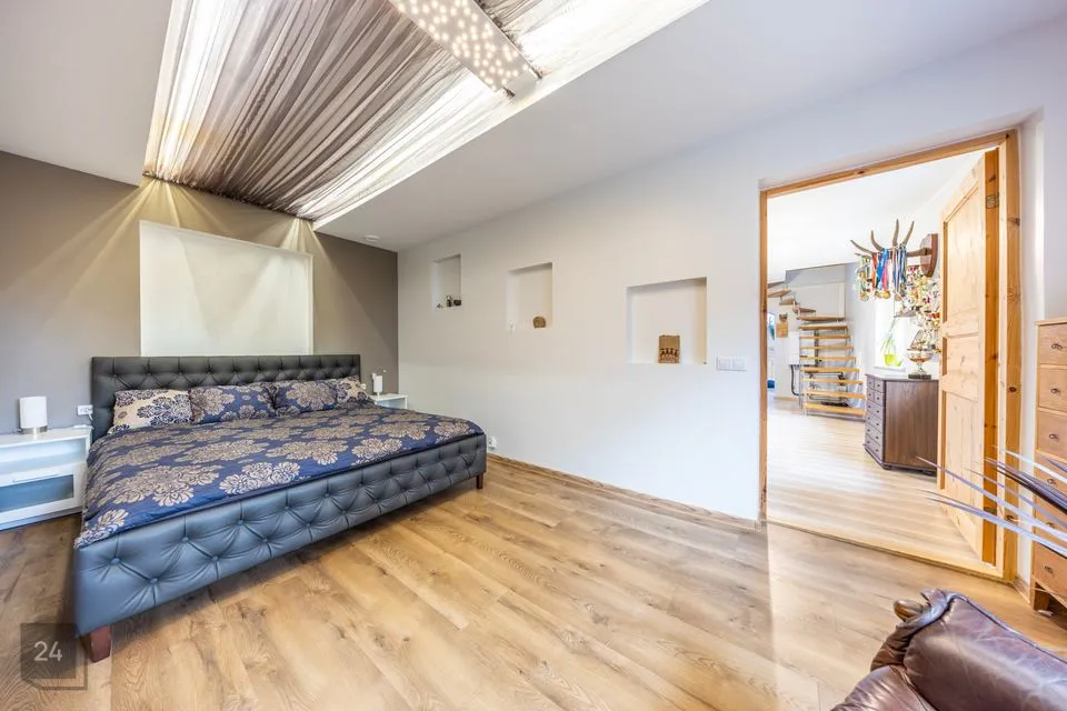 Esimesel korrusel asub avar elutuba kaminaga, köök, suur magamistuba ja väiksem tuba, mis sobib hästi kodukontoriks või lisa magamistoaks.