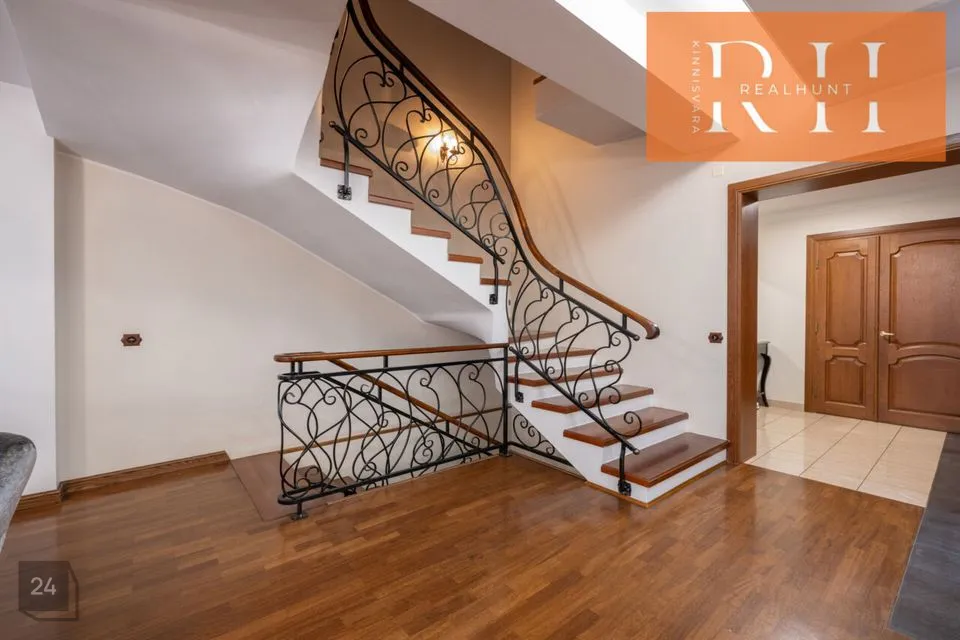 Maja esimese ja teise korruse põrandad on osaliselt plaaditud ja osaliselt kaetud väga erilise ning kvaliteetse puitparketiga (Iroko, Teak ja Sucupira), magamistubades kvaliteetne tammeparkett. Maja keldrikorruse põrandaid katab väga kvaliteetne ja vastupidav plaat. Maja kolmanda korruse põrandat katab soe korkpõrand. Maja korruseid ühendab kvaliteetne ja massiivne täispuidust trepp.