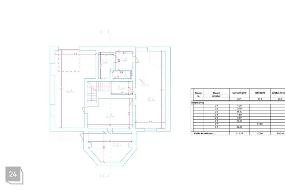 keldrikorruse põrand on rajatud tihendatud killustikalusele. Killustikalusel on EPS soojustus 100mm, hüdroisolatsioon ja raudbetoonplaat 120mm, mille peal on põrandakatted.