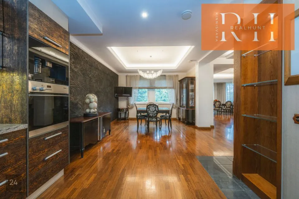 Maja köögis kvaliteetne eritellimusel valminud köögimööbel ja Miele integreeritud köögitehnika (gaasipliit, grill, kohvimasin, külmkapp, nõudepesumasin). Köögi tasapinda katab ehtne marmor.
