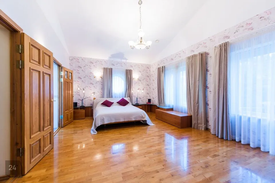 Kolmekorruseline maja avara planeeringuga: 7 tuba, neist 5 magamistuba. Eriti väärib esiletõstmist majasisene bassein ning saun.