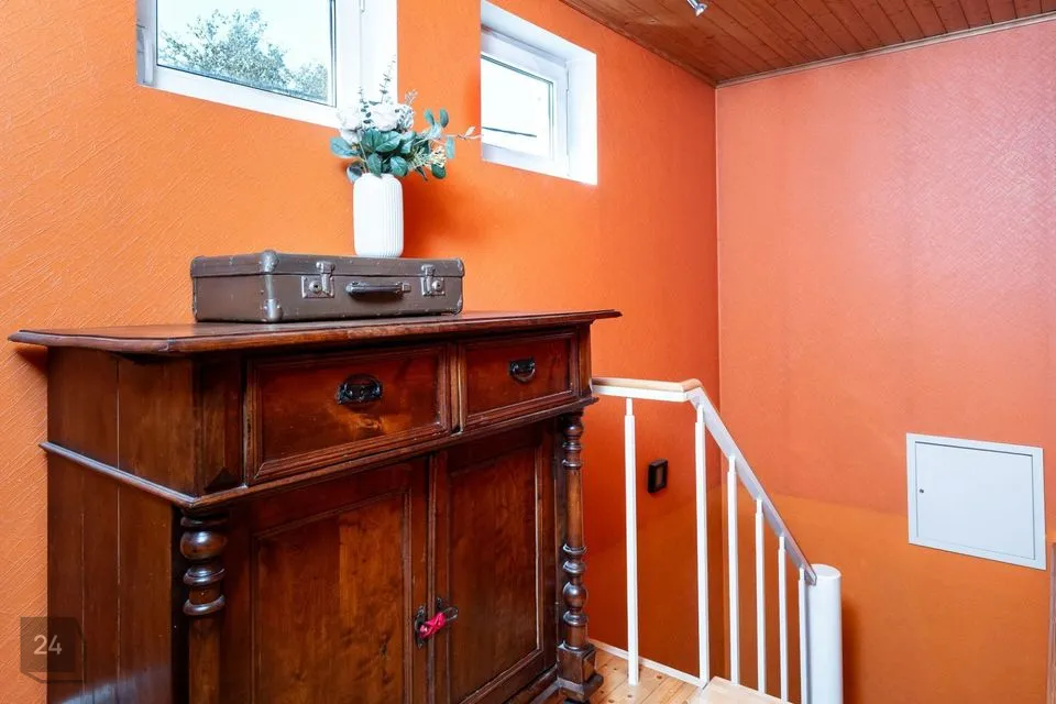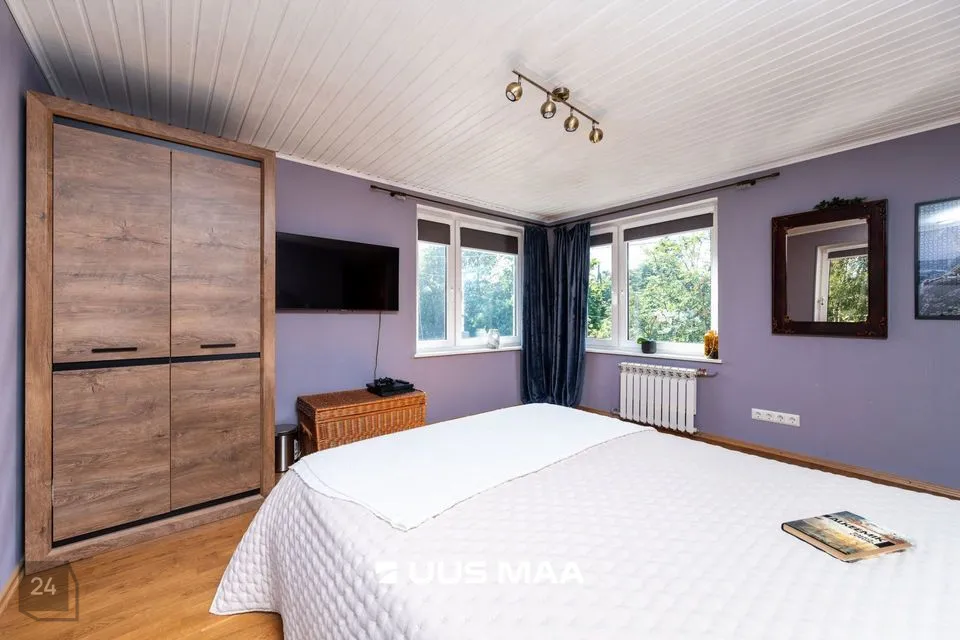 Majas on kolm magamistuba, üks neist alumisel korrusel, kaks ülemisel. Igas magamistoas kapp asjade paigutamiseks. Lisaks on võimalus tekitada katusele terrass. Katus vahetatud 2018.