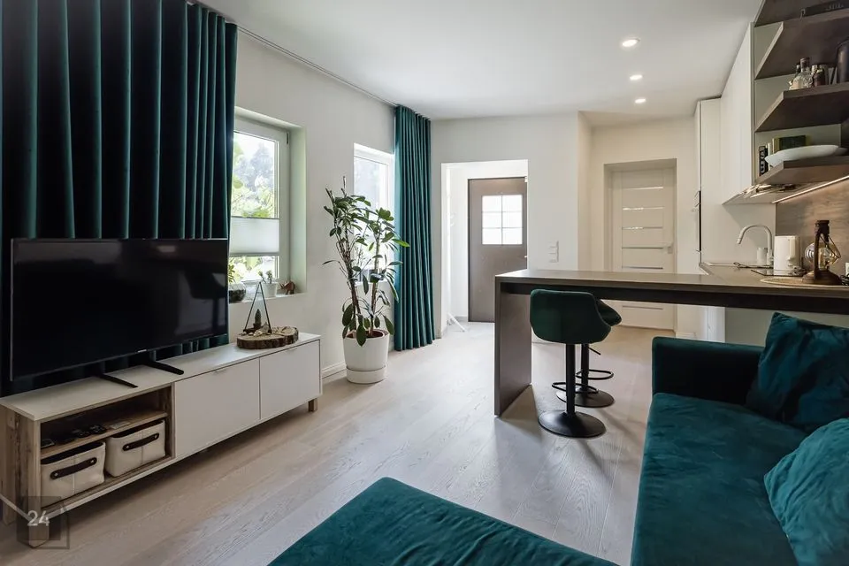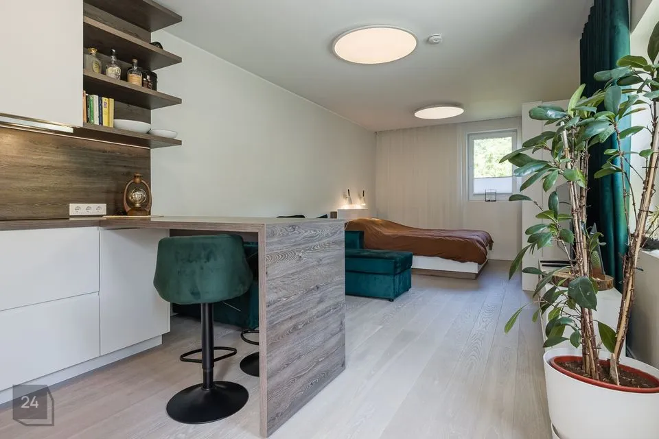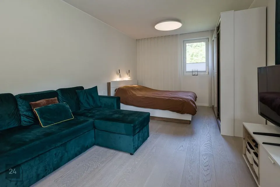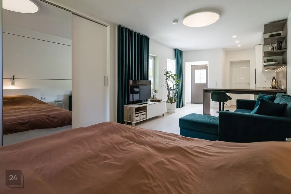 Erilise väärtusena kuulub kinnistu juurde iseseisev, 2021-****. aastatel uuendatud ja kvaliteetse mööbliga sisustatud stuudiokorter – praktiline lahendus näiteks vanavanemate, noore täiskasvanu või külaliste jaoks. Korteris on nutikalt lahendatud, avatud planeeringuga tuba koos kööginurgaga, duširuum-tualett. Lisaks on ruumis kamina paigaldamise võimalus.
