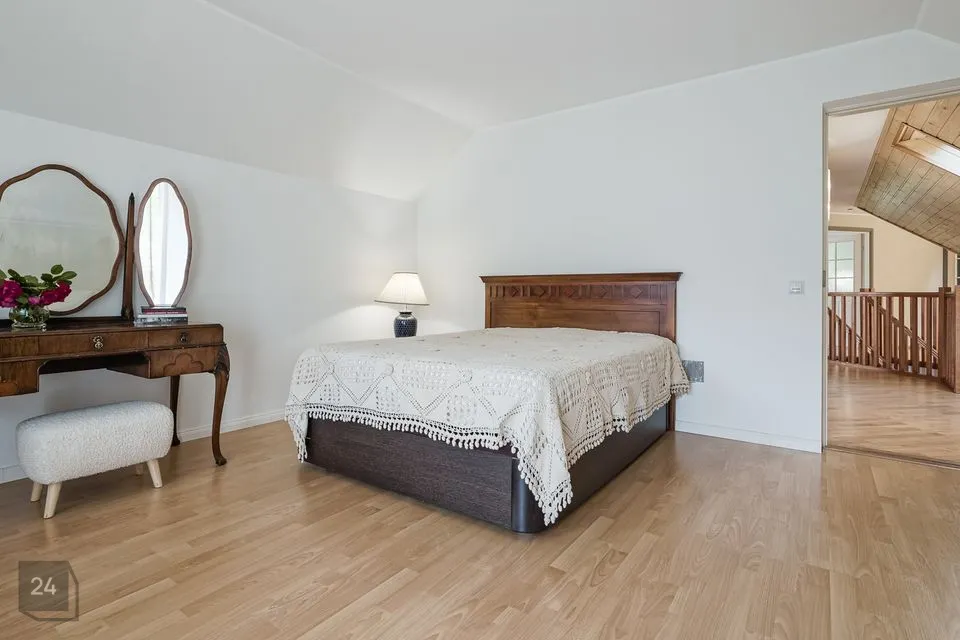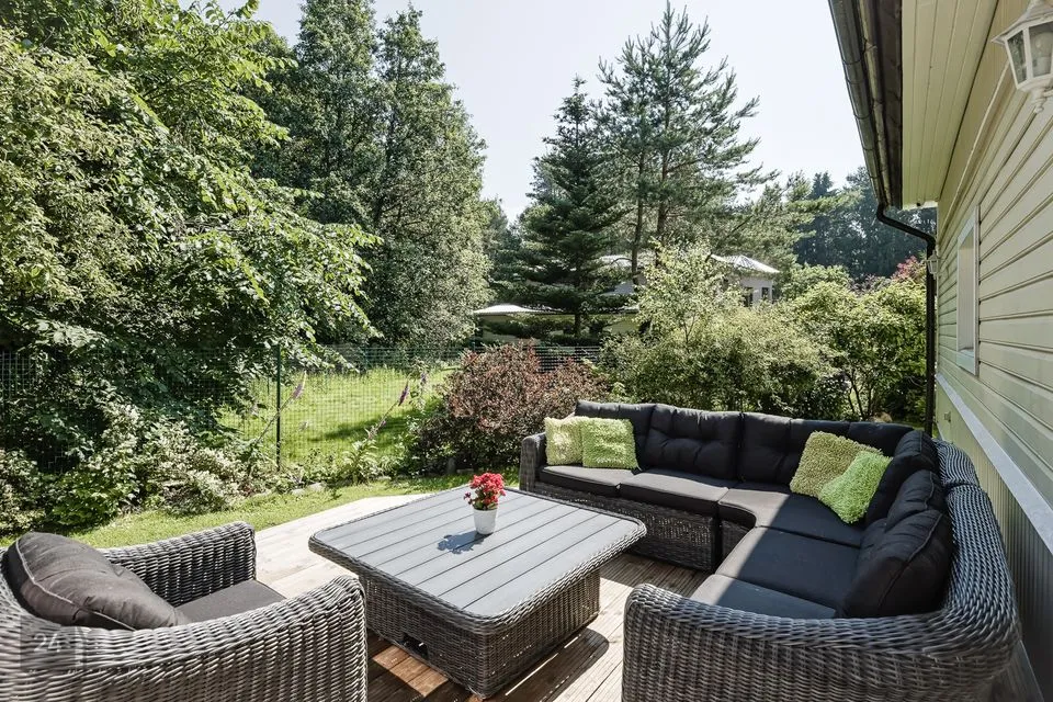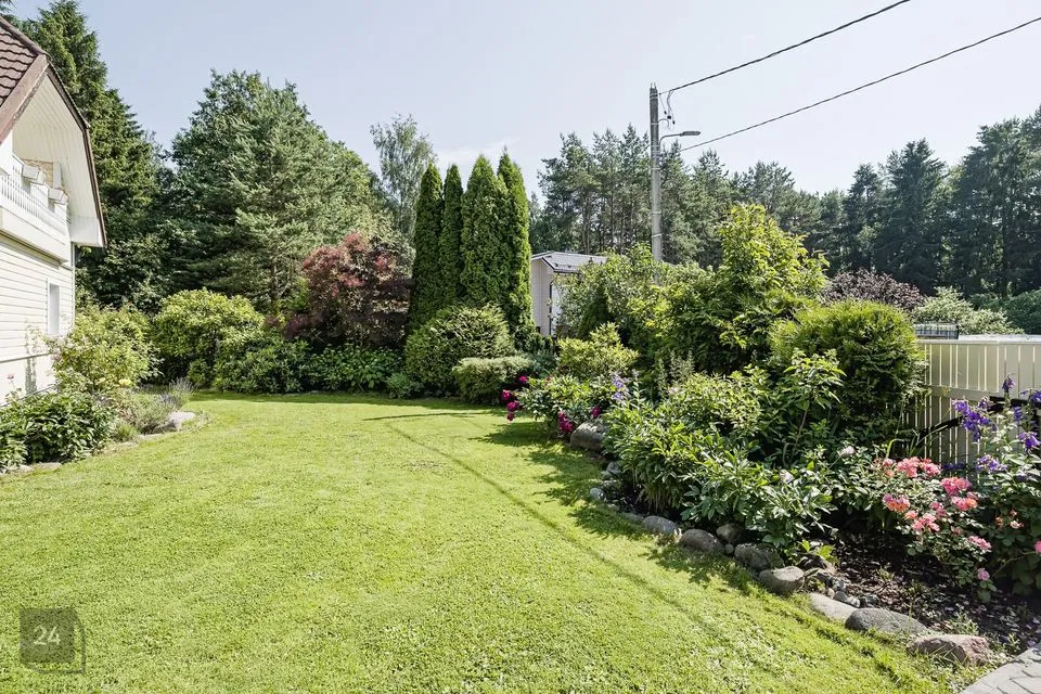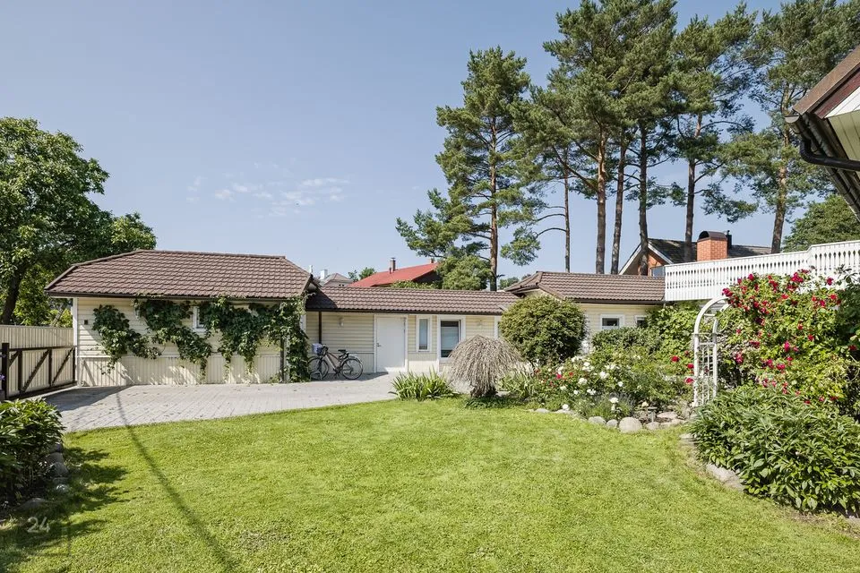 Sellele suurepärasele asukohale vastab ka omanäoline kodu, mis sobib koduks suurepäraselt suuremale perele või isegi kahepereelamuks. Kinnistul asub kahekorruseline peahoone, talveaed/avar suveköök/katusealune terrass, iseseisev stuudiokorter, kuur/panipaik ja garaaž. Ehitis paikneb krundi keskel, jagades aia kaheks erineva kasutusotstarbega osaks – maja ees avaneb professionaalselt kujundatud iluaed lavendlite, rooside, magnooliate ja pojengidega, maja taga kasvavad aga viljapuud ja marjapõõsad, mis loovad toeka koduaiatunde. Kinnistul on olemas salvkaev, mis võimaldab aia hooldust/kastmist ka palavatel suvepäevadel.