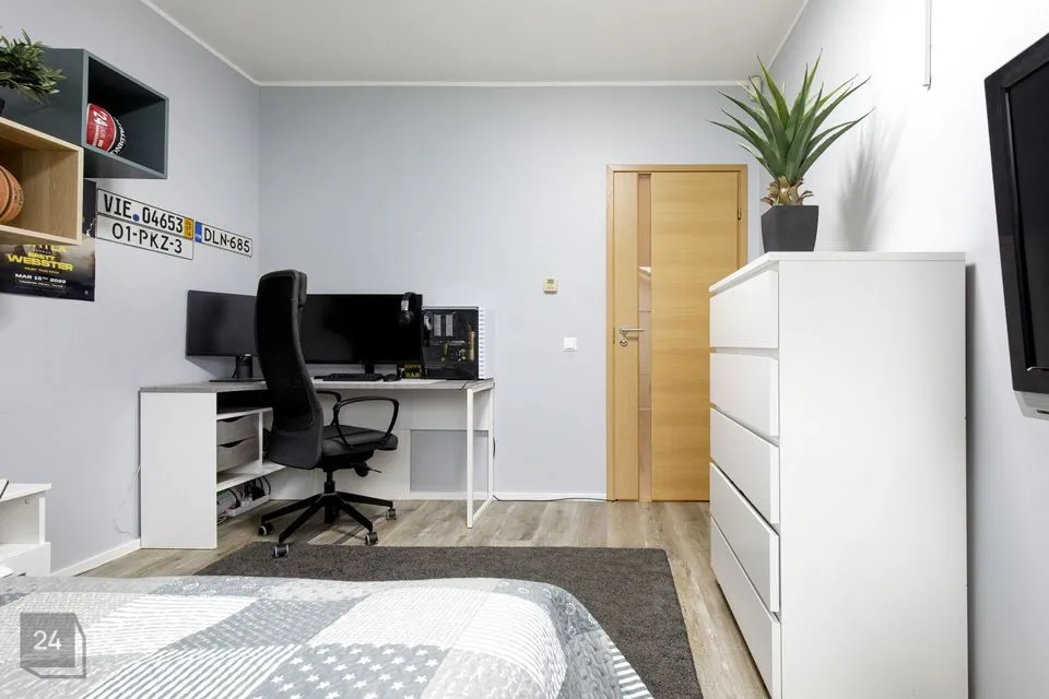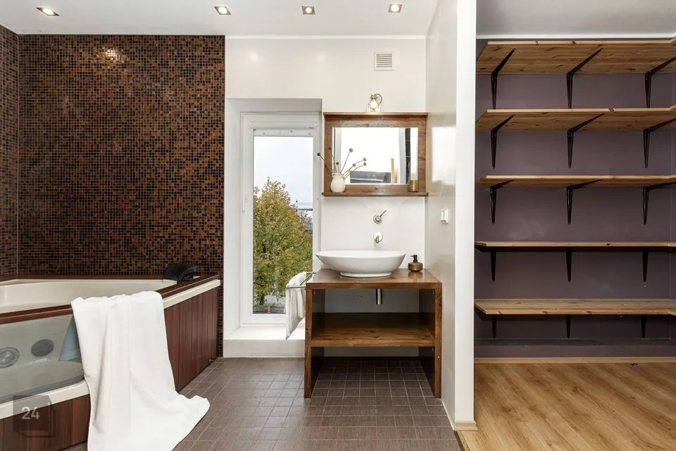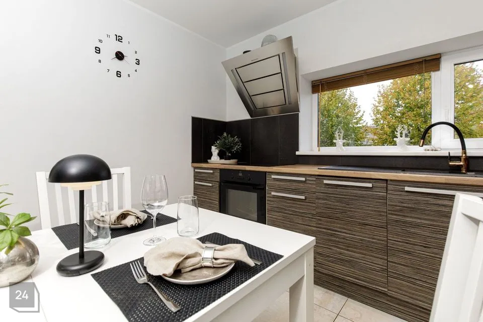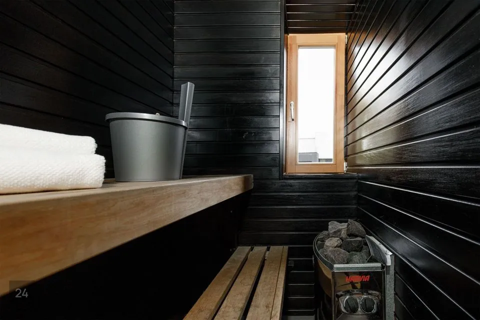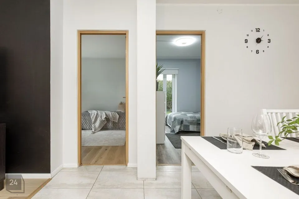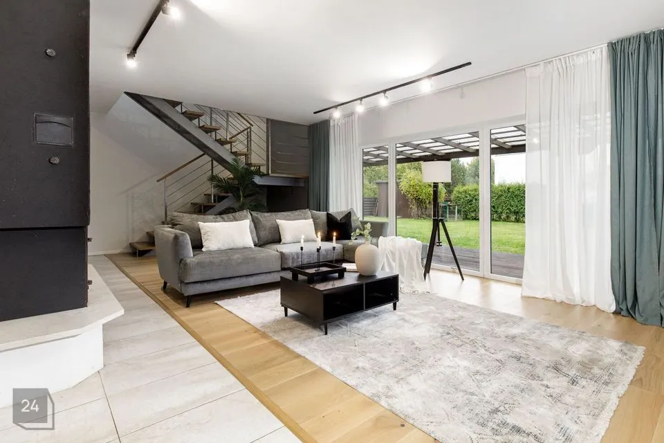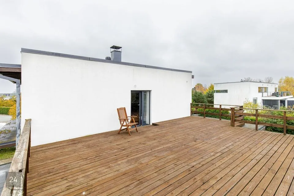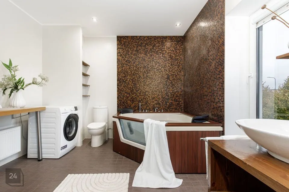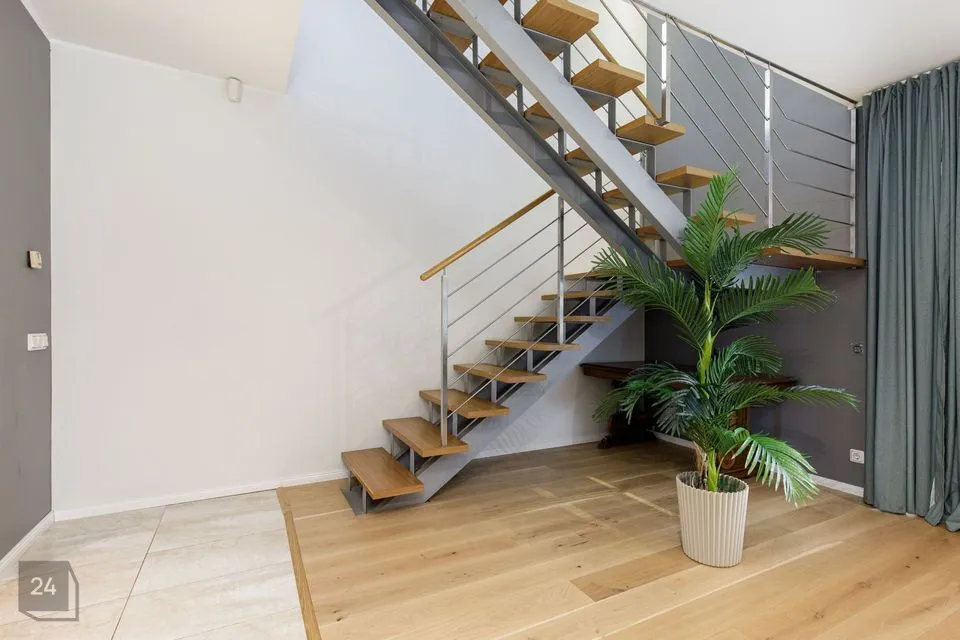 Esimesel korrusel asub suur ja valgusküllane elutuba koos avatud köögi ja söögialaga. Elutoas on kamin, mis loob mõnusa ja sooja õhkkonna. On olemas terrass ning privaatne hoov, kus on ruumi nii perele kui ka külalistele. Samal korrusel asuvad veel kaks magamistuba ning vannituba koos saunaosaga, kus kaks aastat tagasi tehti kapitaalremont, mille käigus uuendati santehnika, mööbel ning paigaldati uus saunakeris.