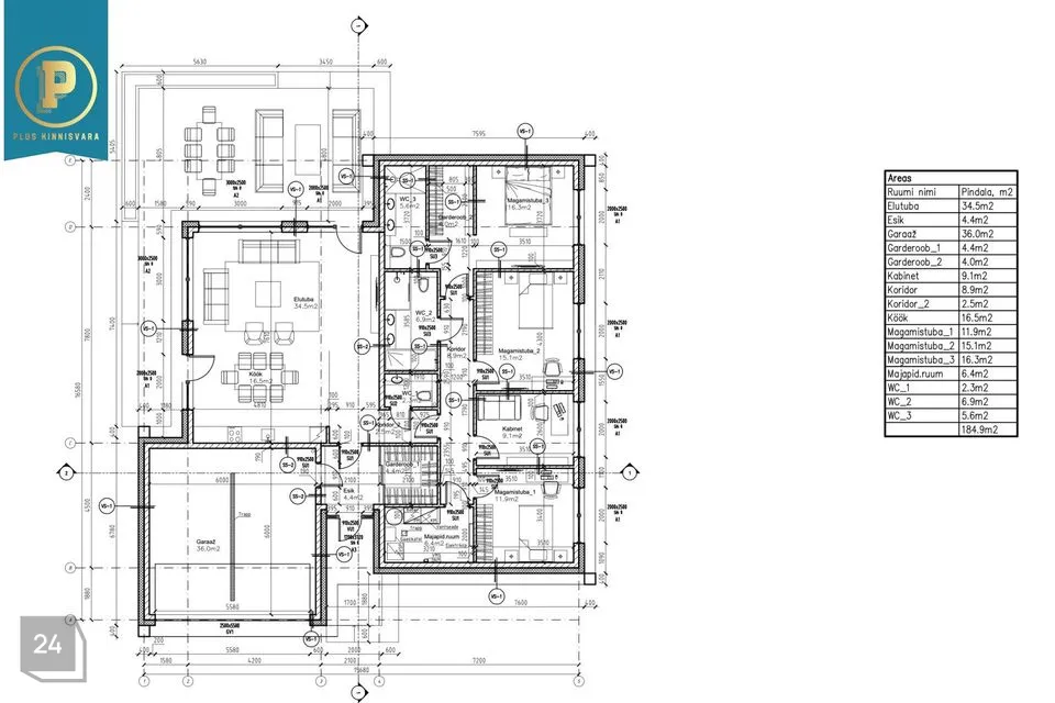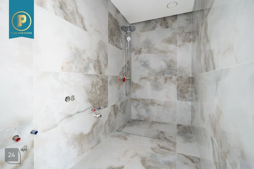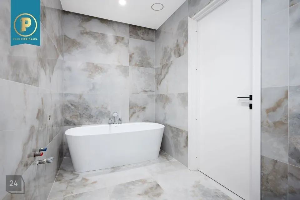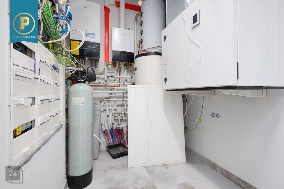 Avar esik, kus on ruumi nii ülarõivastele ja loomulikult ka perenaise kingadele ;) Esikust edasi minnes tuleb avar elutuba / köök ja külaliste WC. Sealt edasi tulevad pererahva magamistoad ja kabinet / külalistetuba. Majapidamisruumis on Kombineeritud küttesüsteem — Daikin õhk-vesi soojuspump ja gaasikatel automaatse vahetusega; võimalik integreerida börsimoodul. Master bedroom on eraldi duširuumi ja garderoobiga. Lisaks siis ka teisele kolmele toale oma vannituba / WC. Põneva uuendusena on mõlemas vannitoas nn soe sein, mille juurde rätikud riputades nad kenasti ära kuivavad.