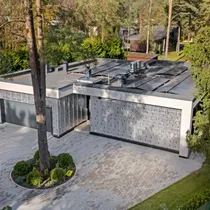 Pakutava kodu planeering on samuti väga hästi läbimõeldud ja energeetiliselt korrektne. Garaaži saab parkida 2 elektriautot, millel oma laadijad, garaažis eraldi ventilatsiooniseade ja 2 x 10 kW akud, mis saavad katusel olevast päikesepargist voolu (või saab osta odavat elektrit, mida salvestada ja hiljem kasutada). Tuppa saab tulla läbi garaaži või otse õuest. Kõik uksed (k.a. välisuks) on puidust ja eritellimusel tarnitud.