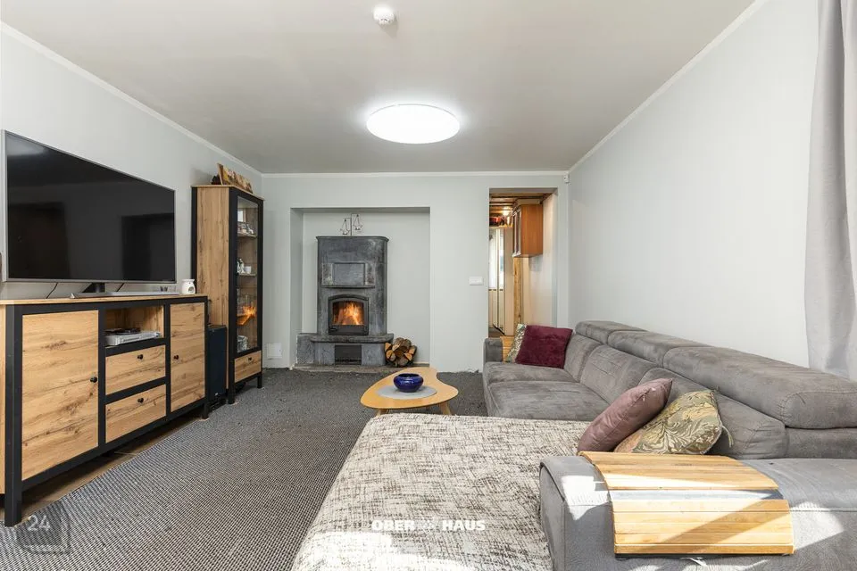 Küttelahendused: Tulikivi kamin ja õhksoojuspump alumisel korrusel, elektriradiaatorid teisel korrusel