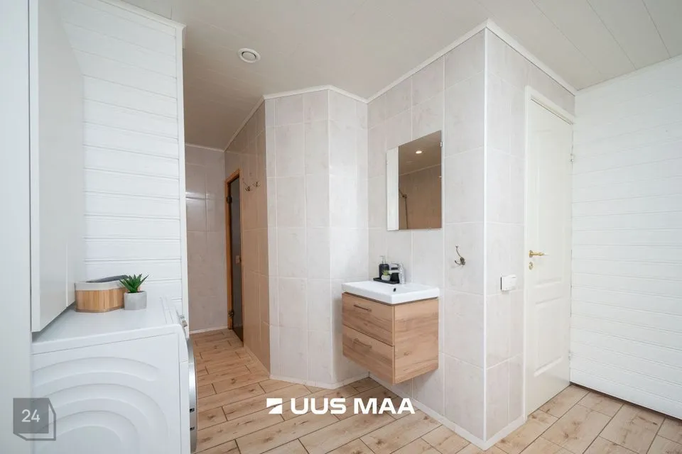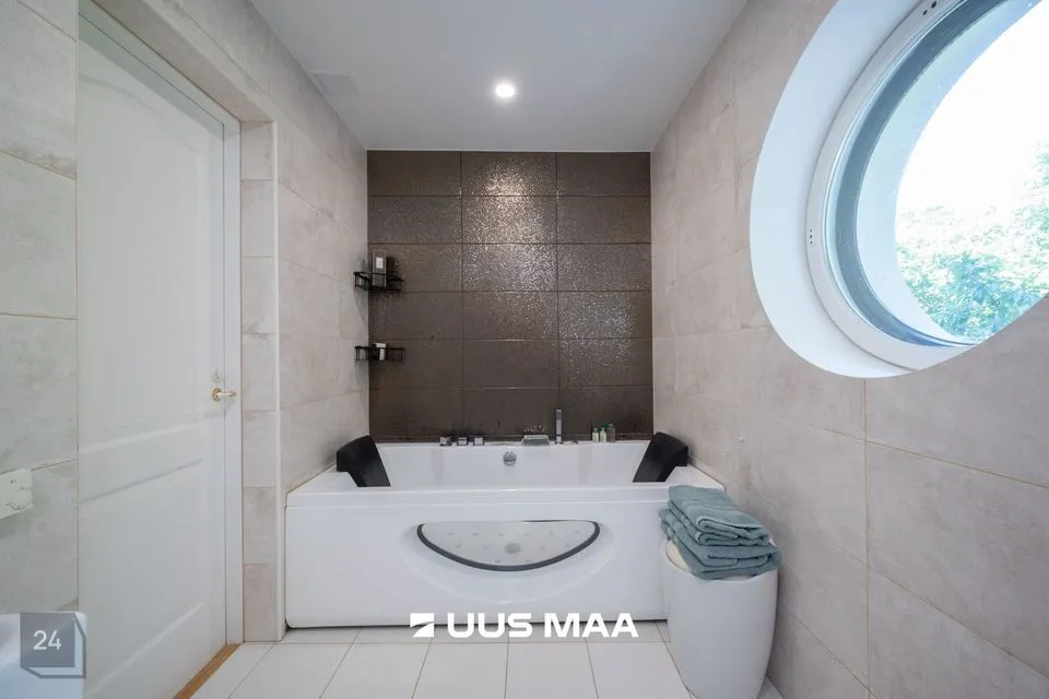 See suur ja avar Villa hõlmab endas kõike, mida ühest Merivälja Villast võiks oodata. Esimesel korrusel ootab Teid mõnus kaminaga elutuba, suur kööki, avar trepihall, suur vannituba kus topelt dushid ning ka saun, väikest tuulekoda ning eraldiseisvat tualettruumi.