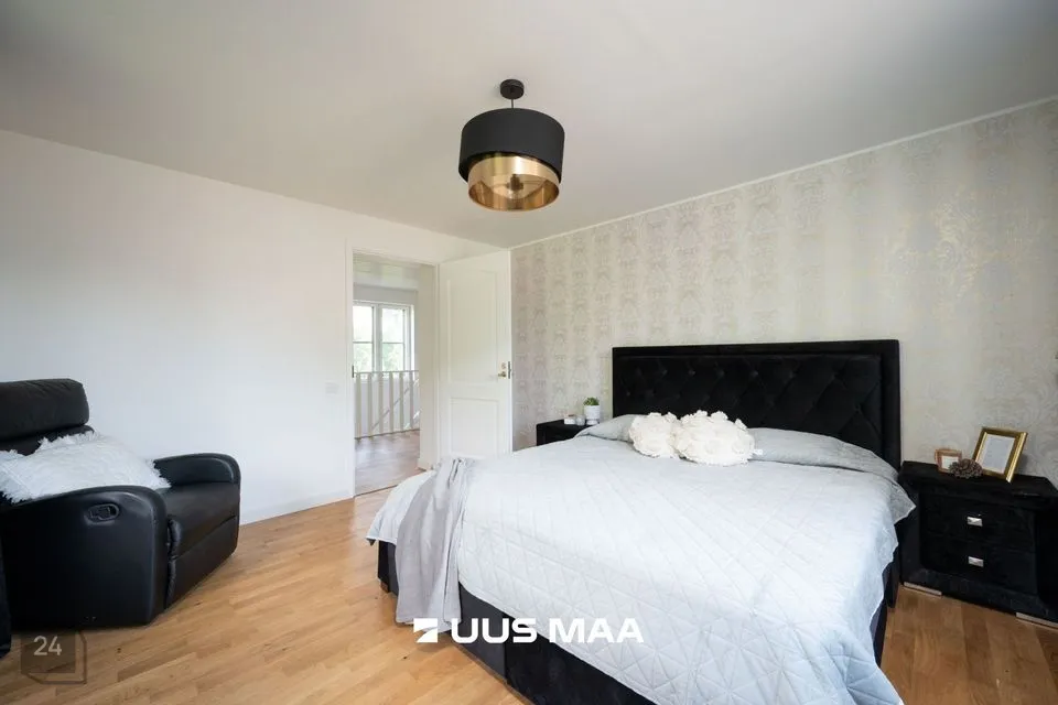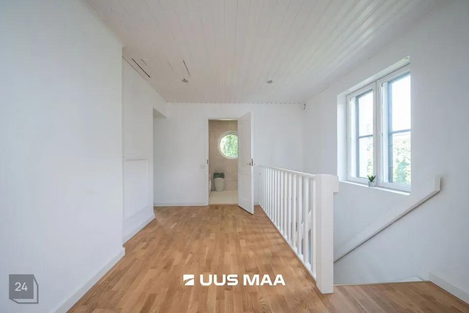 Villa teisel korrusel on avar trepihall, vanniga helgetes toonide ja ägeda ümara aknaga vannituba, ning 4 magamistuba.