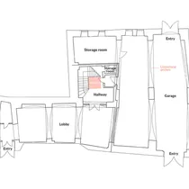 Kortermaja 1. korrusel asub fuajee (80.4 m²), trepihall (19.6 m²) ning garaaž 6-le autole (168.3 m²).