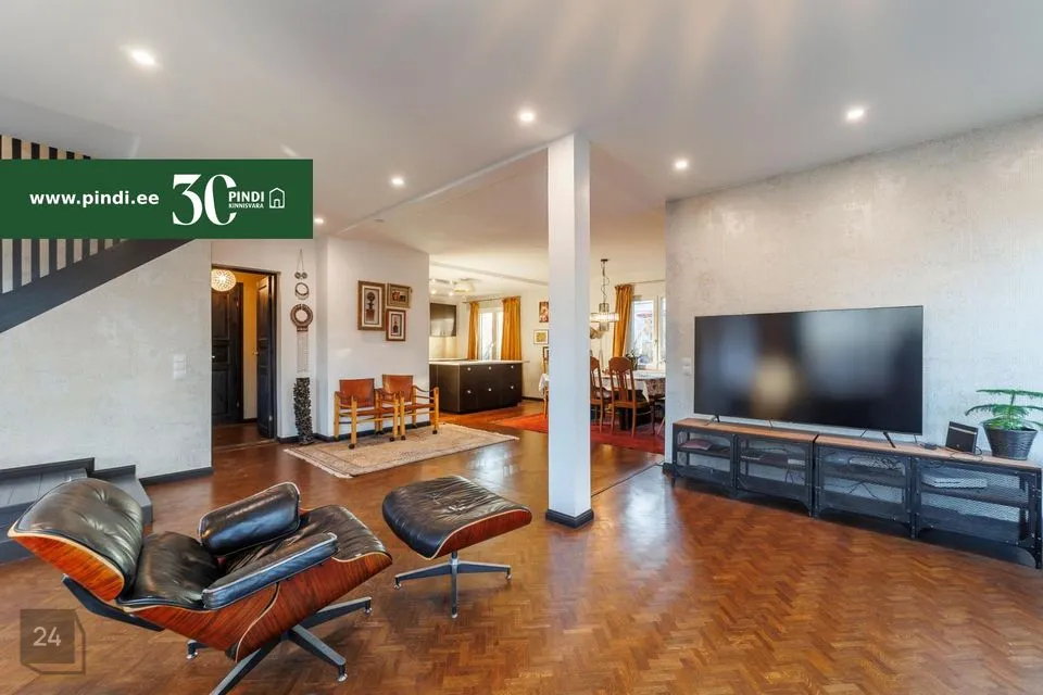 173,5 m² eluruumi • 3 täiskorrust + 70 m² täiskelder • 4 magamistuba • 3 vannituba • suur terrass • privaatne aed