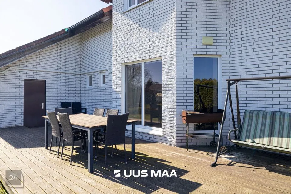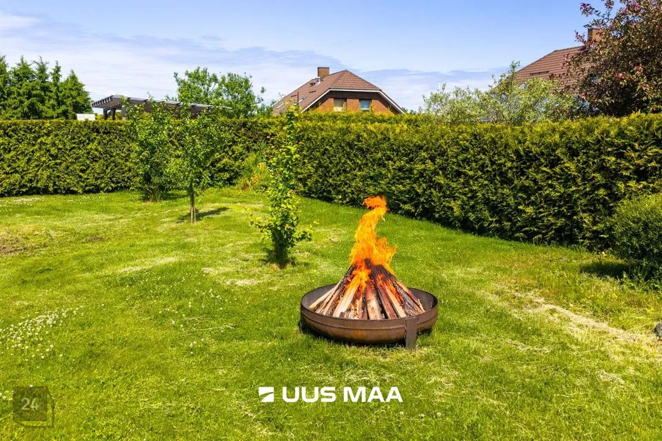 Mõnusalt suures hoovis on lastele mänguväljak, batuut ja liivakast. Kogu perele ja sõpradele on aias mõned marjapõõsad (mustikad ja mustsõstrad) ja mitmeid viljapuid (ploomid, õunad, kirsid). Hoovis on ka ilupuid ja põõsaid, kuid üldjoontes on aed vähe hoolt nõudev ja uus pere saab aiatöödes olla täpselt nii mugav või usin, kui aega ja mahti on. Ilusa muru eest kannab hoolt usin robotniiduk, et uuel pererahval jääks rohkem aega varbad murus aiamõnusid nautida.