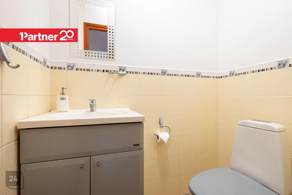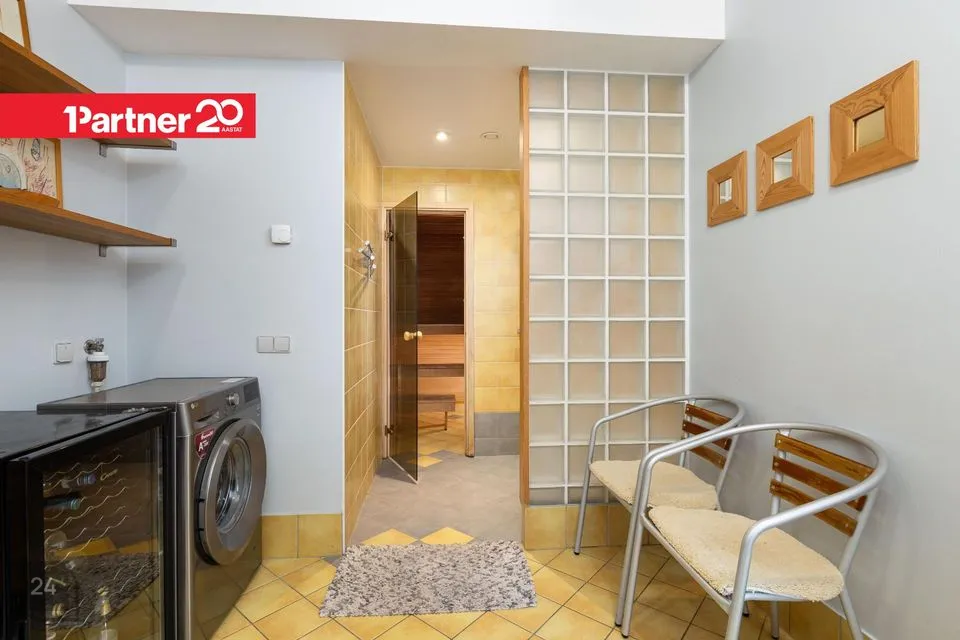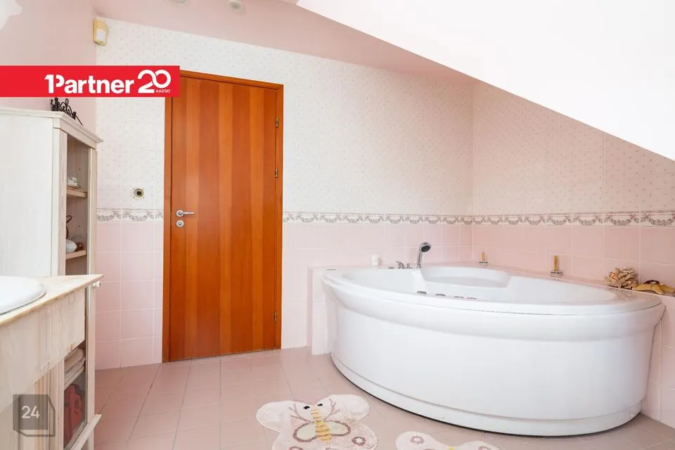 Wc ja vannituba asetsevad eraldi (1,8+7,8m²). Teise korruse pesuruumi on paigaldatud mullivann. Ruumide suurusele lisandub katusealune kaldepind.