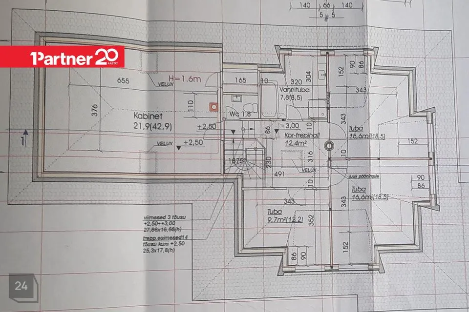 Teisel korruse trepihallist viivad uksed nelja eraldiolevasse magamistuppa (21,9+16,6+16,6+9,7m²).