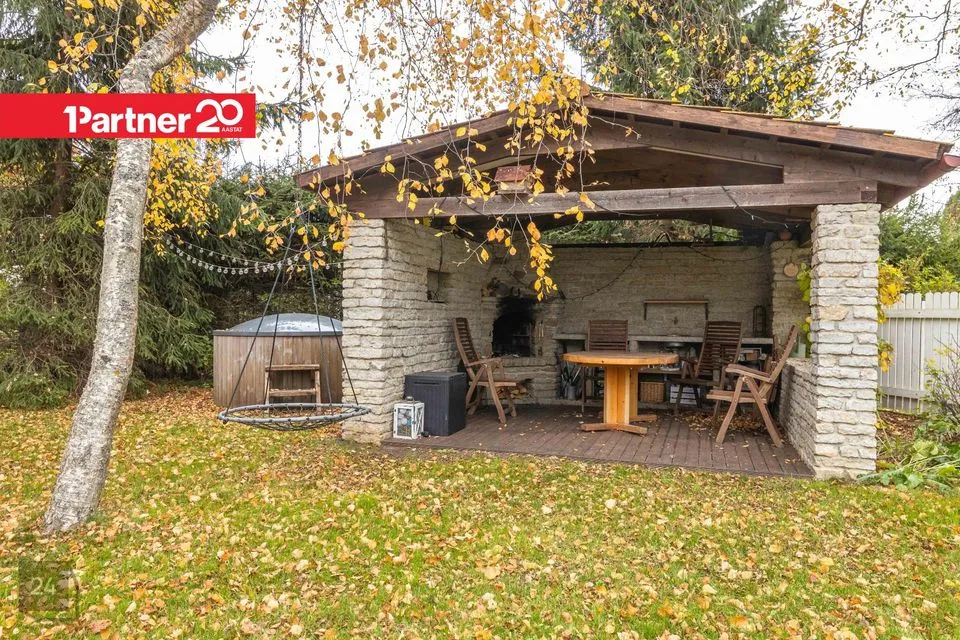 Aia varjulisemas nurgas asub katuseaune istumisala koos väliköögi ja kaminaga. Väliköögis olemas kraanikauss ja veekraan. Istumisala juures on ka kümblustünn.