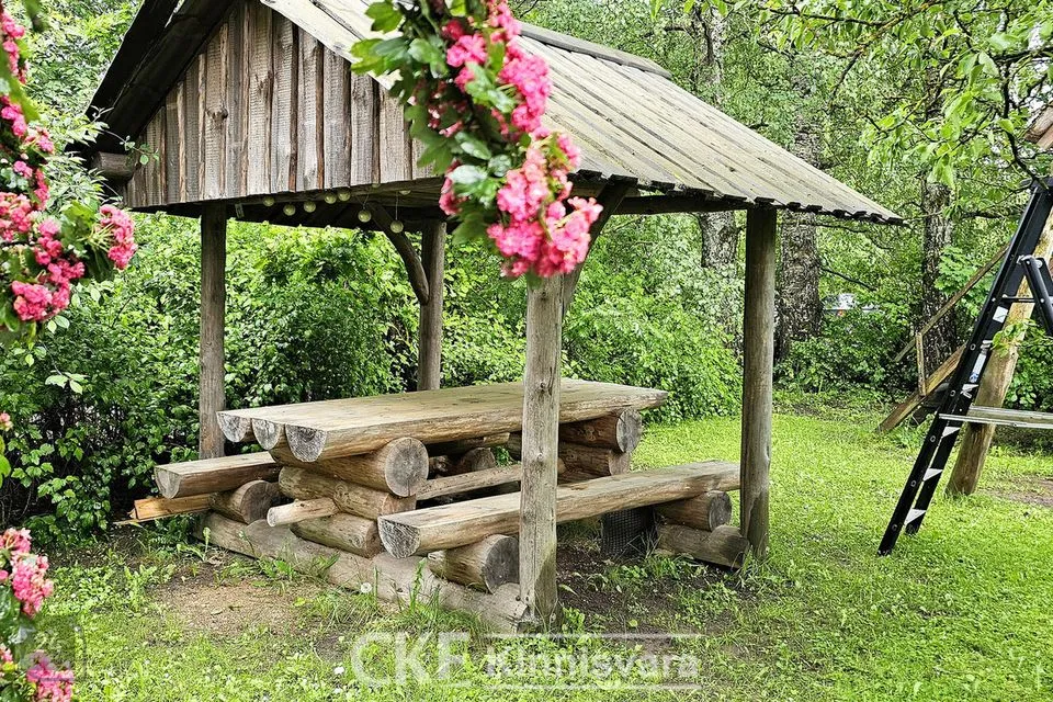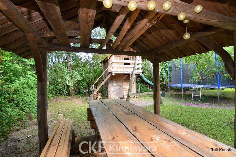 Väliterrasil asub väike panipaik. Maia ümber asuv õueala on aiaga piiratud. Kinnistu piiril kasvab kõrge hekk, mis muudab õueala privaatseks. Aias kasvavad õuna-ja pirnipuud. Lastele täispuidust mängumaja koos panipaigaga, kus saab hoiustada jalgrattaid jms.