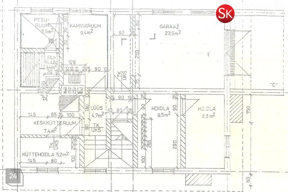 WC, garderoob, avar fuajee pääsuga teisele korrusele ja keldrisse
