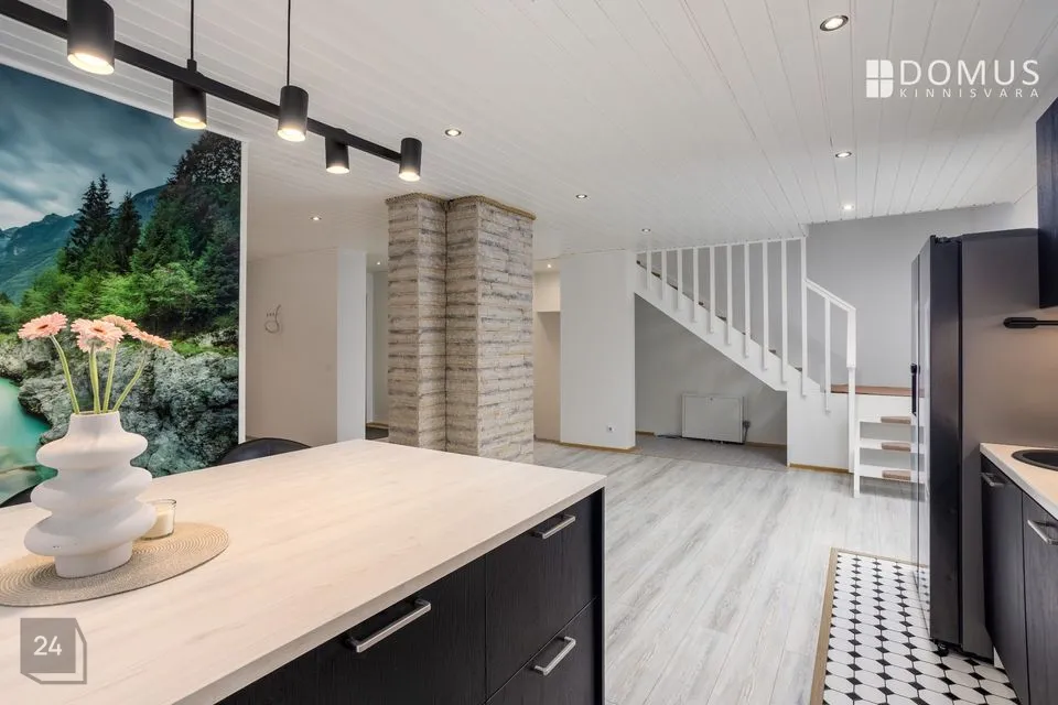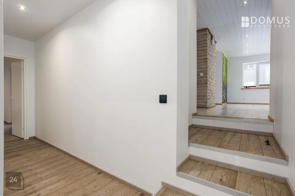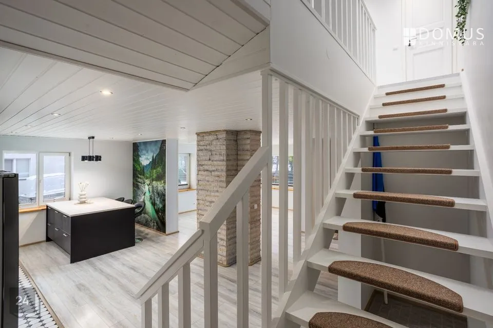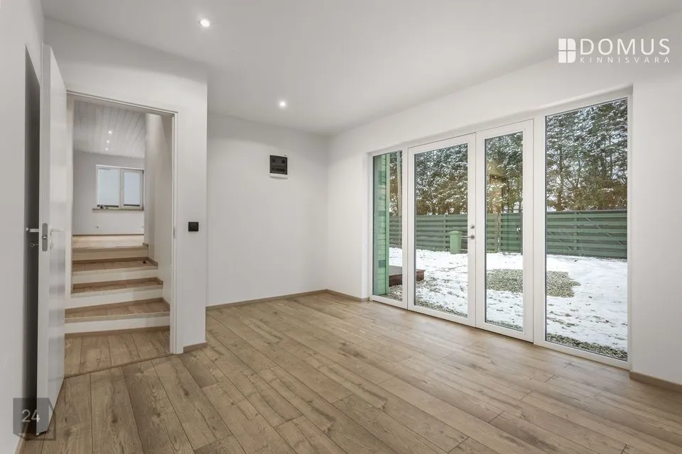 Kodu sisekujundus on läbivalt hele, puhas ja kaasaegne. Palju aknaid ja neutraalsed toonid loovad valgusküllase ja mõnusa elukeskkonna.