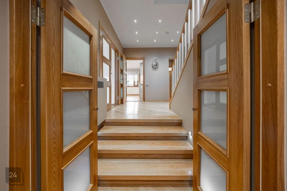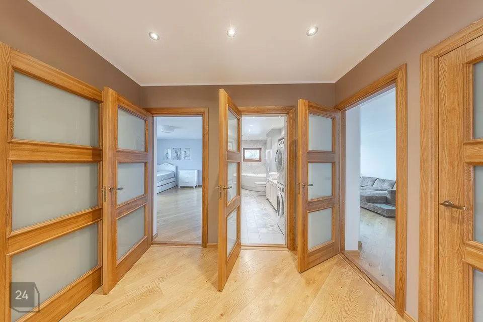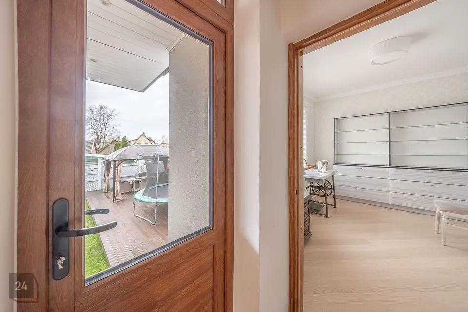 Maja välisusteks on massivsed puituksed ja siseusteks eritellimusel puituksed (osaliselt klaasiga). Põrandaid katab naturaalne puitparkett (tamm). Sanruumide põrandad on kaetud keraamilise plaadiga.