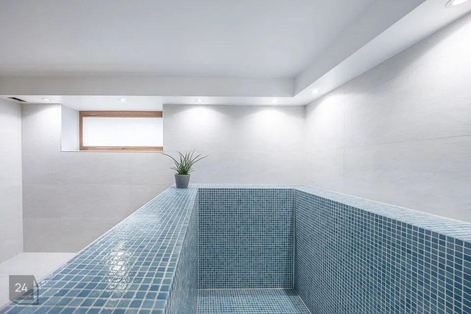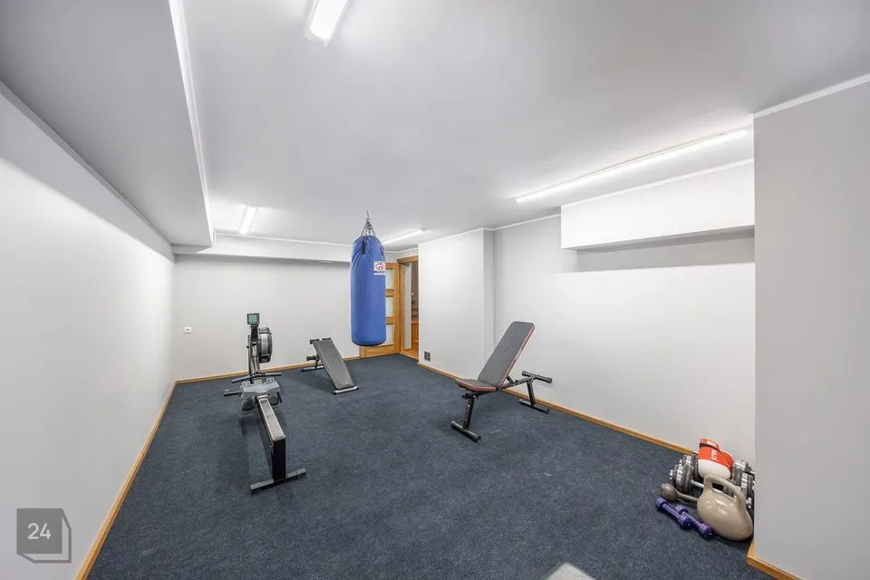 Keldrikorrus on renoveeritud väga kvaliteetsete materjalidega (põrandakatteks tiigipuust laevatekk). Keldris asub saunakompleks - leiliruum, bassein, pesuruum ja riietusruum. Lisaks on keldris jõusaal, korraliku helisüsteemiga kuid helikindlaks ehitatud kinoruum, WC, panipaik ja katlaruum.