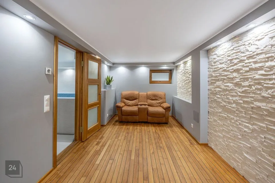 keldrikorruse ruumid on ehitatud puhke-, sauna ja hobiruumideks. Tagahoovis on privaatne väliterrass. Kinnistu on (585 m2) ja ümbritsetud piirdeaiaga, mis on varustatud kahe puldist avatava autoväravaga.