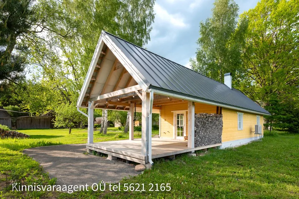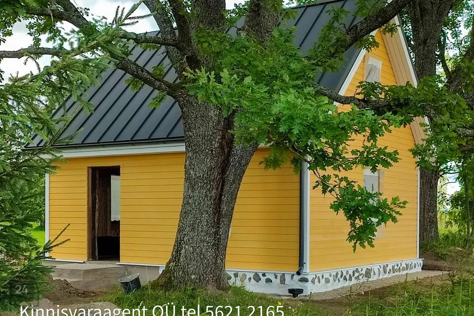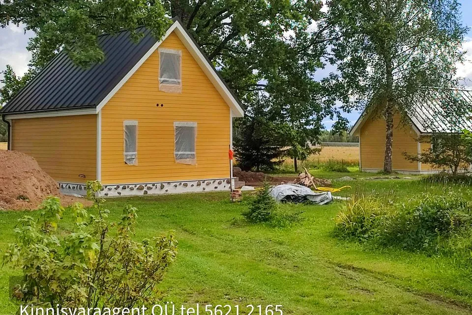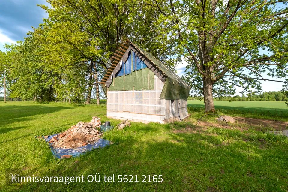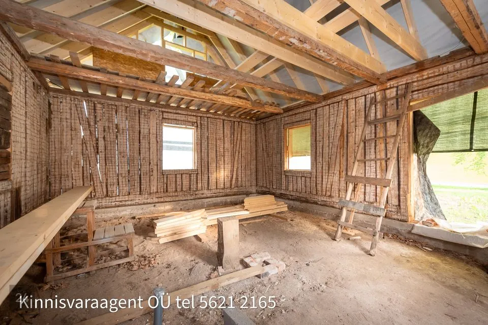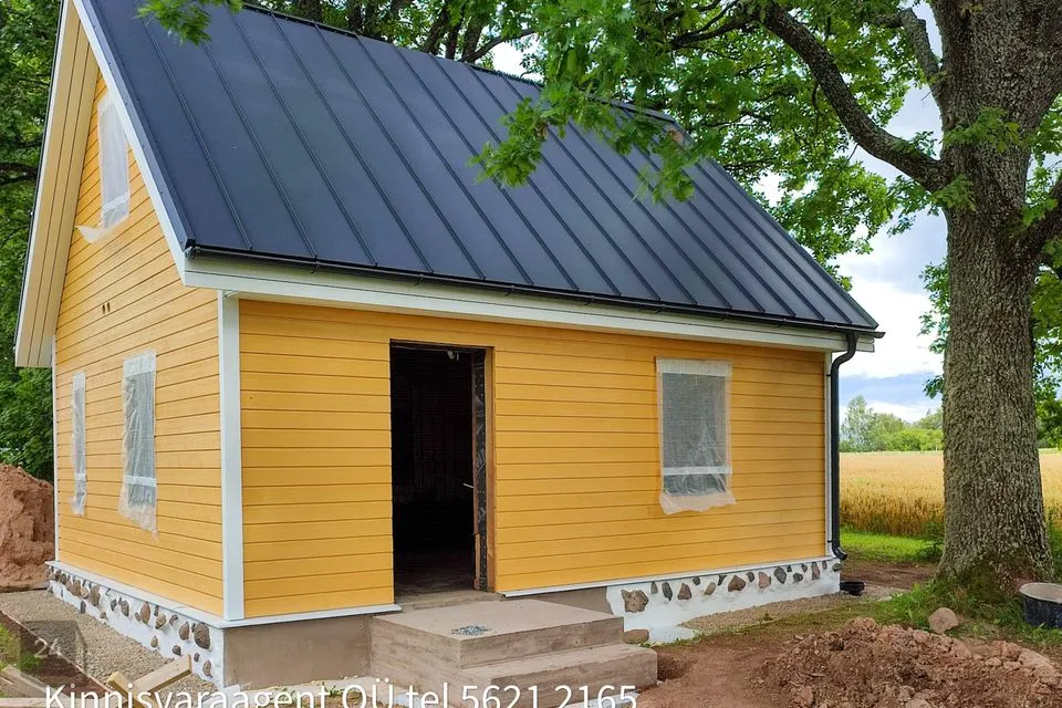 NB! Fotodel kile all olev väikeelamu on peaaegu valmis: paigaldatud on uus katus, sarikad, soojustus ja fassaadilaudis. Kommunikatsioonid on sisse veetud, uus soojustatud betoonpõrand valatud. Siseviimistluse saab teha uus omanik enda maitse järgi.------ KOLM VIIMAST FOTOT TÄNANE SEIS SELLE HOONEGA!