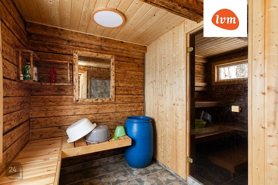 Vana saun on korda tehtud, seal on olemas eesruum, leiliruum ning pesuruum. Lisaks on ka terrassi sisse ehitatud suur kümblustünn.