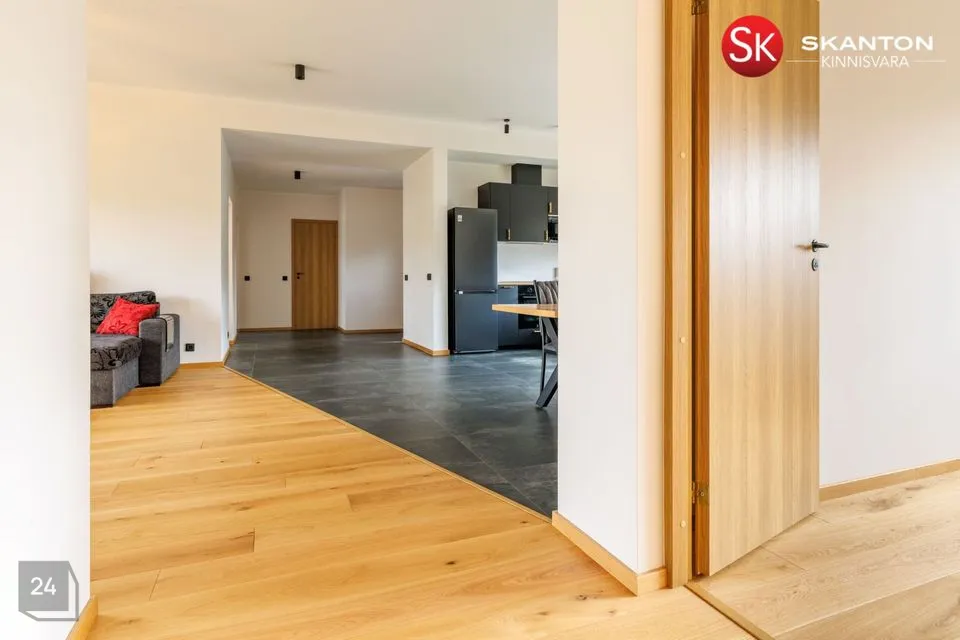 Valgusküllane ja ajatu siseviimistlus, kus domineerivad neutraalsed toonid ja suured aknapinnad. Tammepuidust põrandad, modernne köök ning avarad ruumid loovad hubase ja kaasaegse elukeskkonna. Müügihind sisaldab köögimööblit koos intregeeritud tehinikaga.