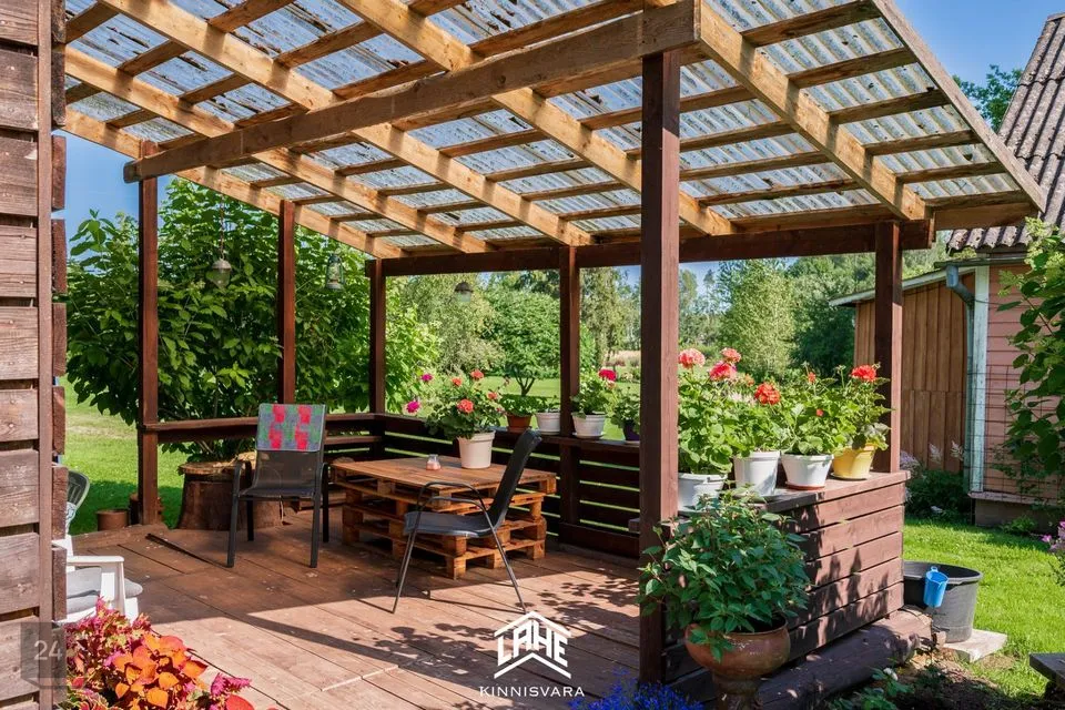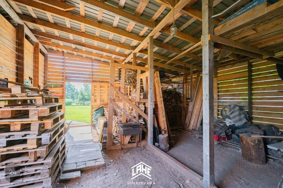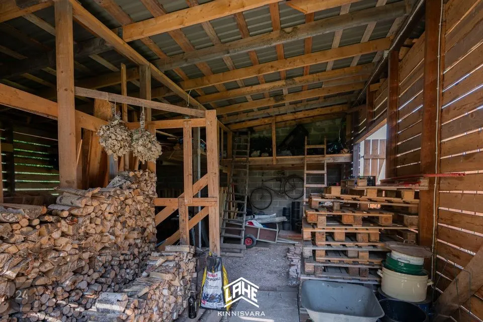 Kinnistul paikneb korralik kiviplokist garaaž ning puukuur väikese varjualuse ja terrassiga.